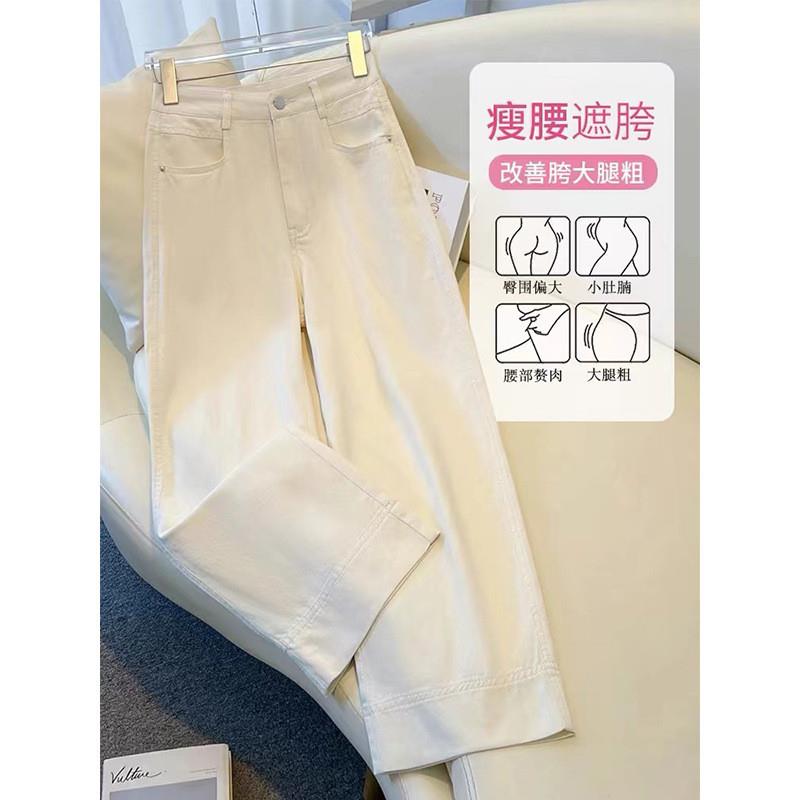 大码胖MM九分牛仔裤女春秋薄款宽松显瘦小个子垂感高腰直筒阔腿裤