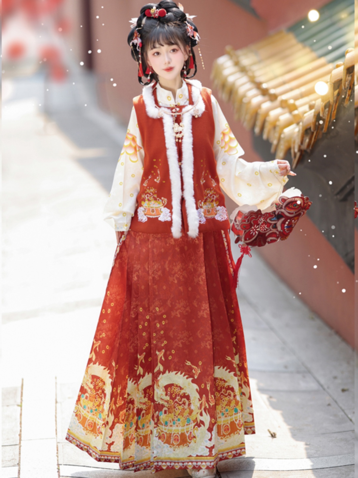 新款龙年拜年服招财进宝重工刺绣成人汉服女提花马面裙秋冬款可爱