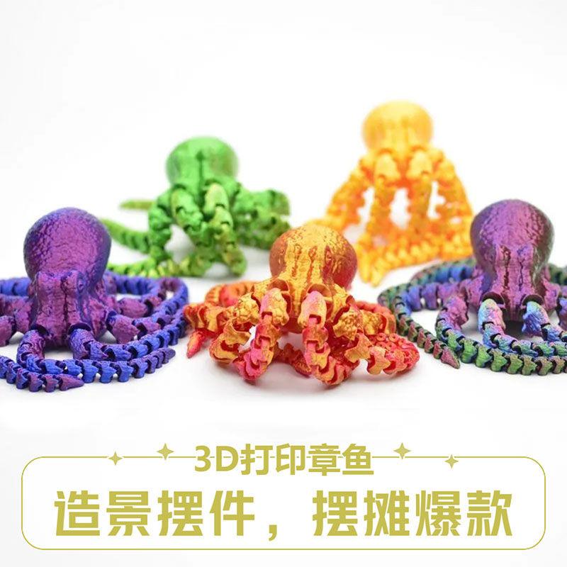 3D打印摆件章鱼乌贼八爪鱼动物模型仿真关节可动手办儿童玩具男