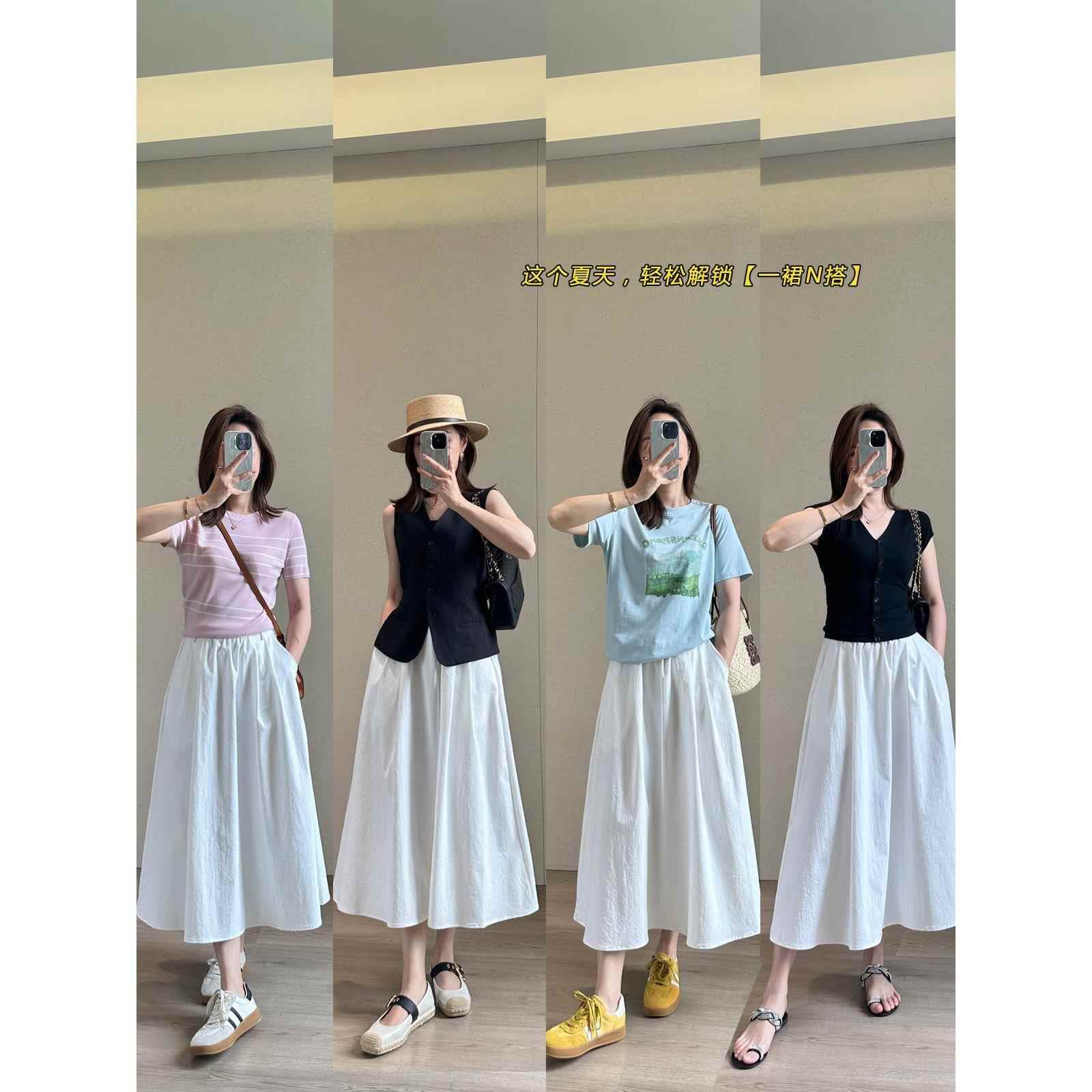 靓小靓【高货】抗皱超态棉法式伞裙【一抚即平】氧气小白裙小黑裙