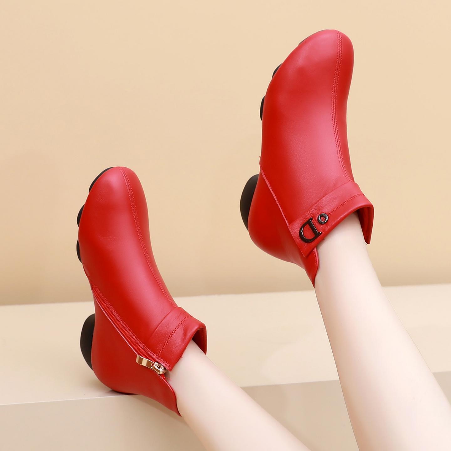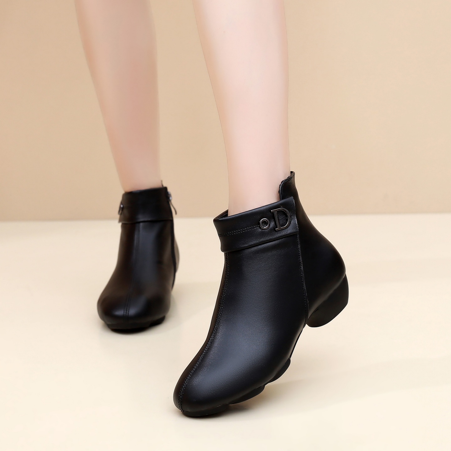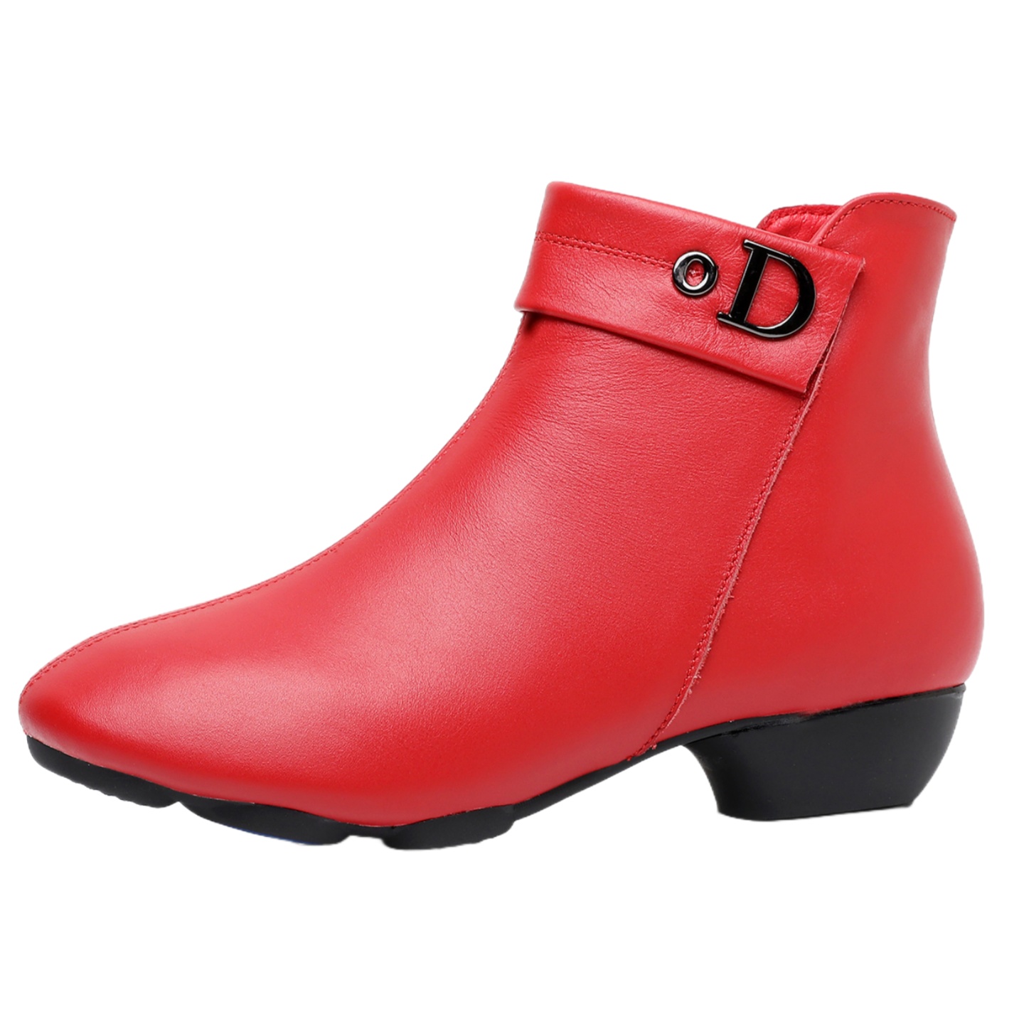 2025新款女士真皮广场舞蹈鞋低跟软底摩登舞交谊舞短靴冬季跳舞鞋