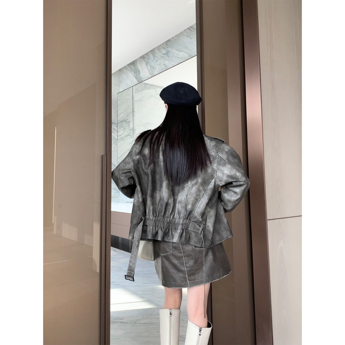 PAPERLLL辛间复古晕染皮衣外套女2025新款爆款街头感机车短款夹克