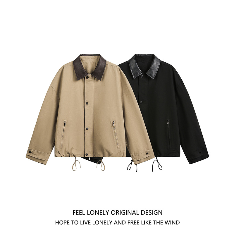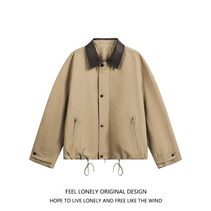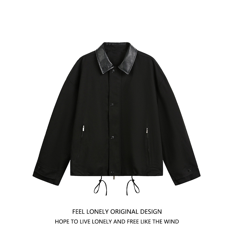 Feel lonely 美式复古拼接皮领设计感夹克男女秋季新款宽松外套潮