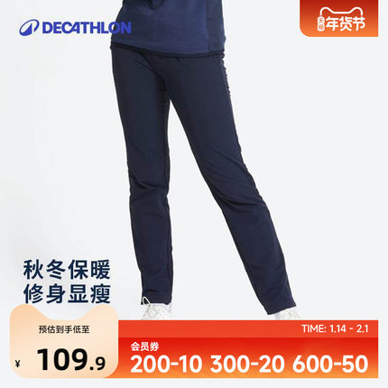 迪卡侬运动休闲裤女秋冬保暖长裤防风高尔夫长裤修身显瘦棉SAG2