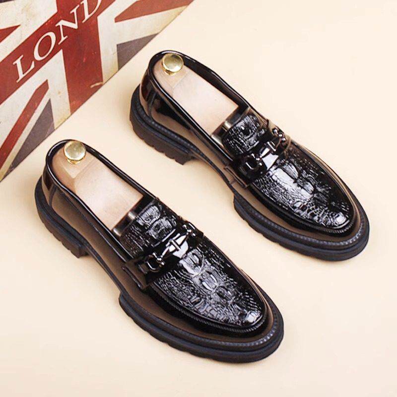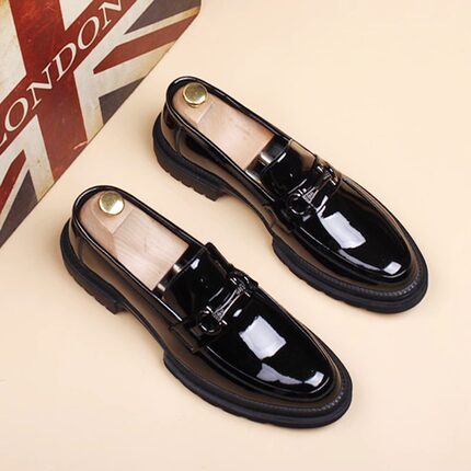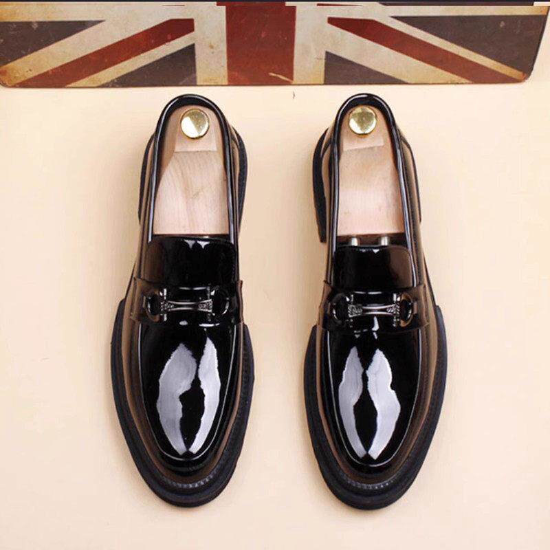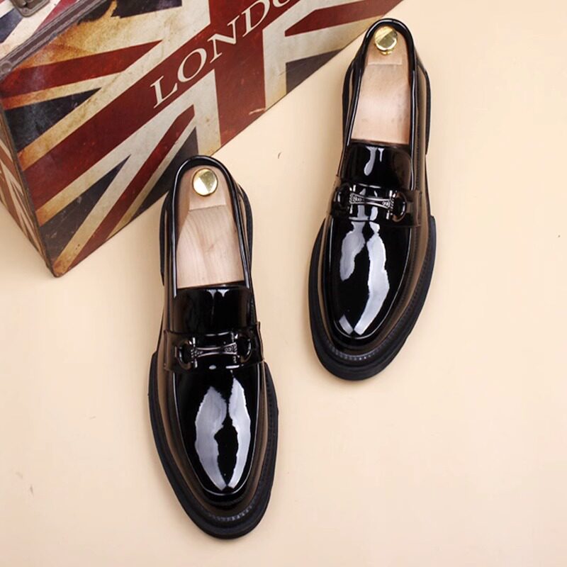 男鞋夏季透气2025新款漆皮亮面英伦风男士商务正装一脚蹬皮鞋男款