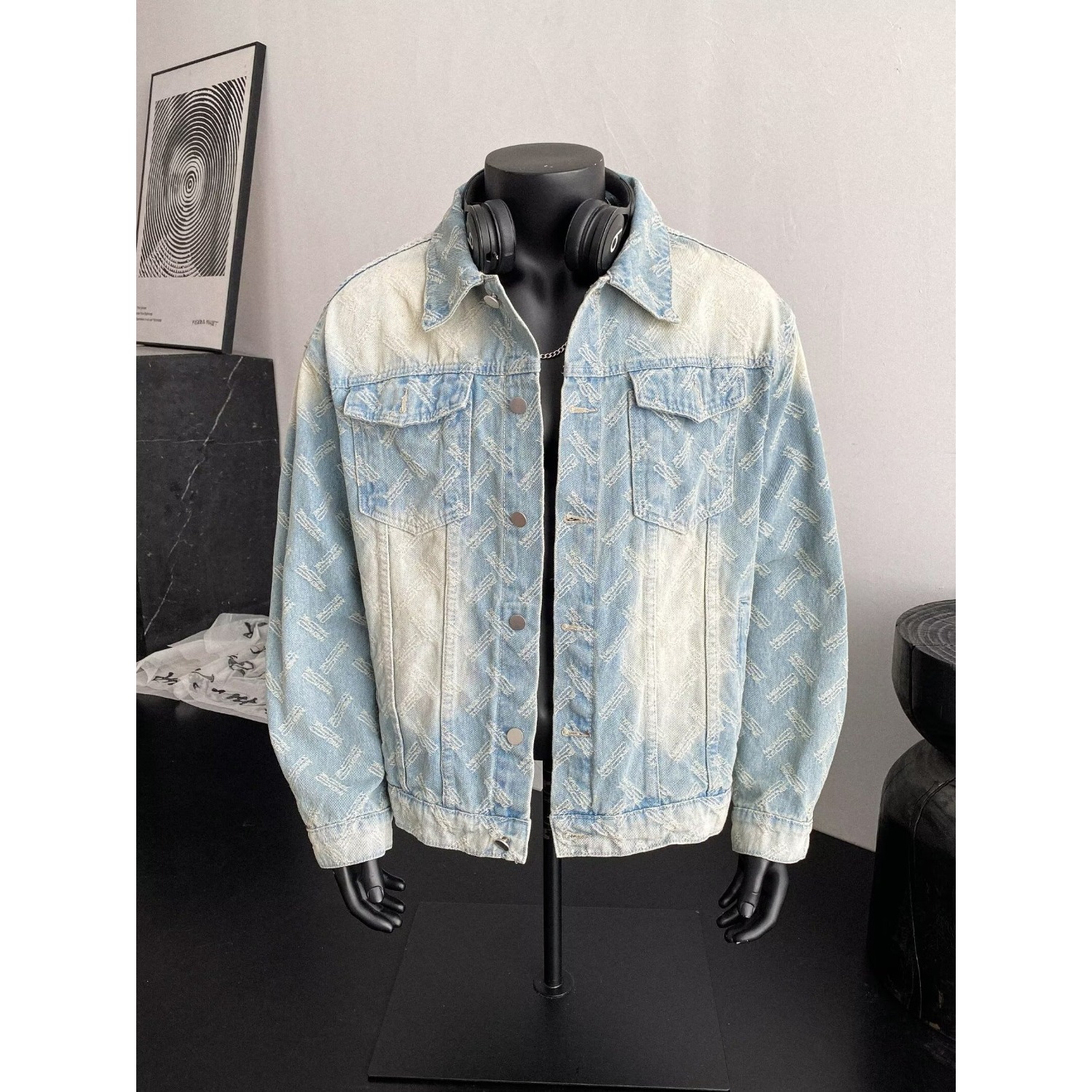水洗提花牛仔夹克男春秋季美式潮牌翻领工装外套高街休闲痞帅上衣