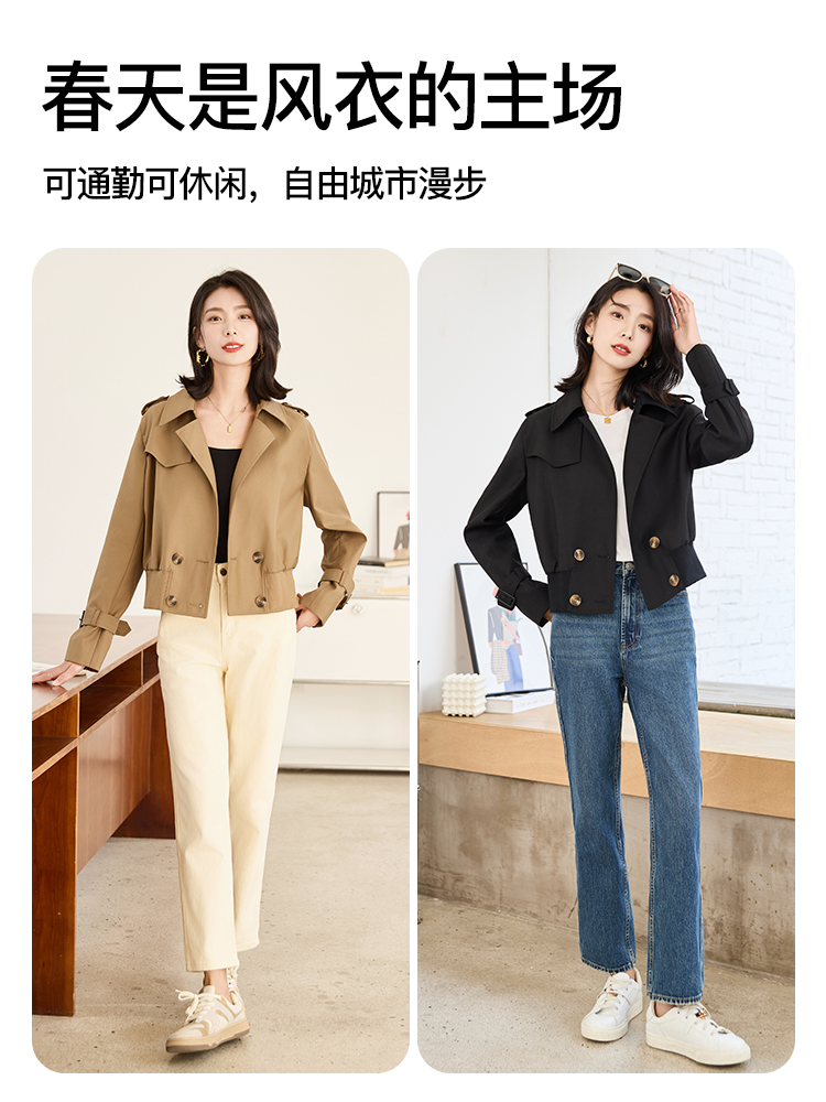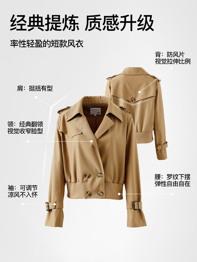 OSA欧莎休闲复古短款风衣女秋2024新款高级感气质小个子上衣外套
