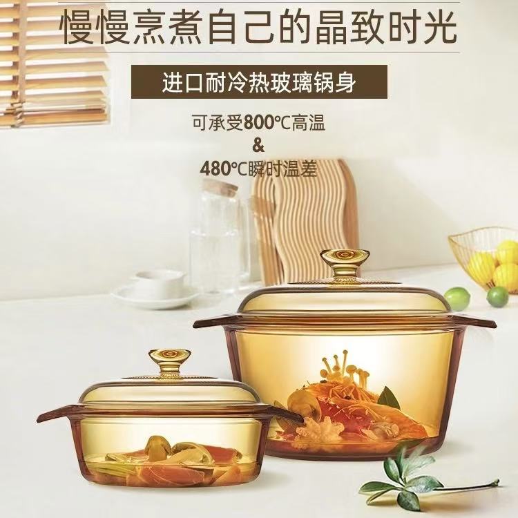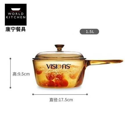 康宁单柄锅奶锅玻璃锅VSP-1L带嘴1.5L不带嘴可明火透明玻璃汤锅