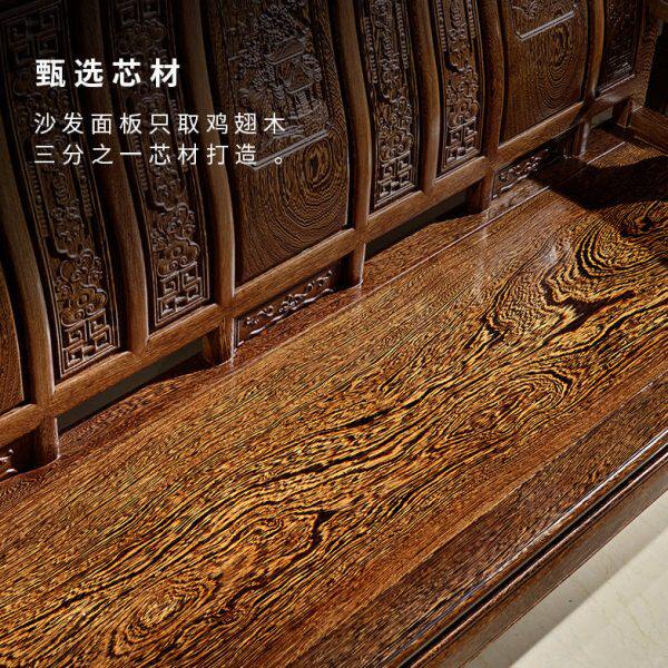 山水万王木 字匠 红木木中式客厅家具茶几组合鸡翅仿古实木沙发