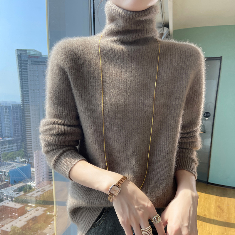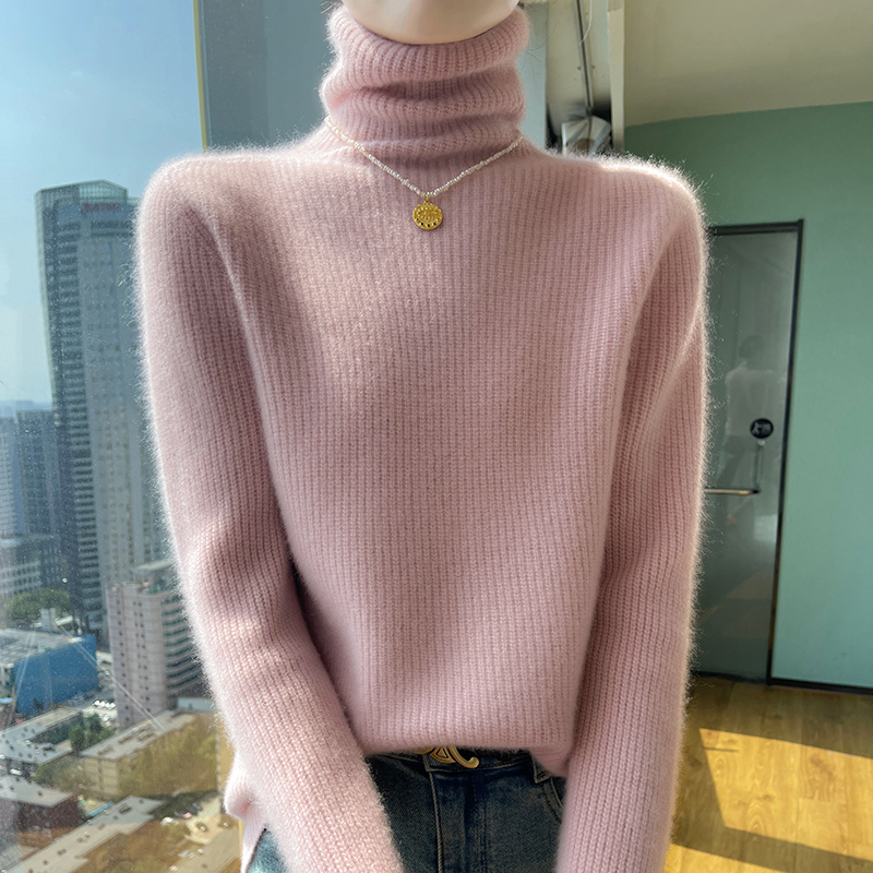 加厚无缝堆堆领元宝针100纯山羊绒衫秋冬新款毛衣女针织打底内搭