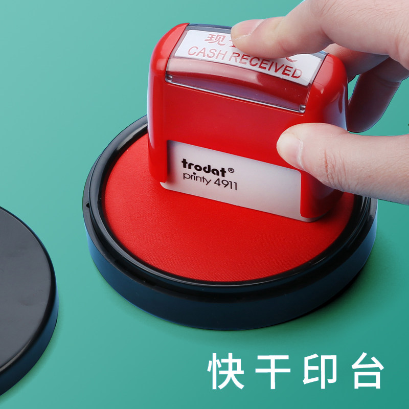 得力快干印台海绵芯大号速干印泥红色印泥盒长方形橡皮章便携印油补充液专用油盖章印章办公用品印尼水性硬泥