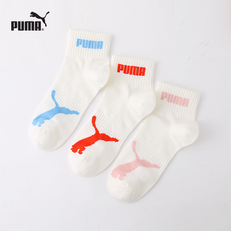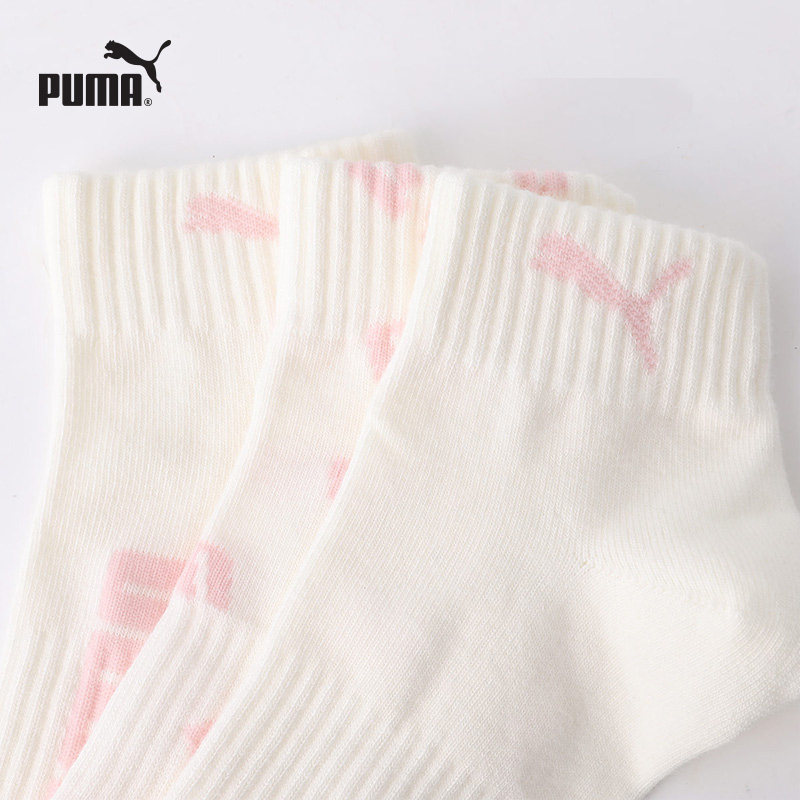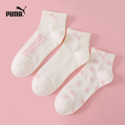 PUMA彪马新款爆款定制袜子女士时尚潮流米白色吸汗透气中筒袜3双