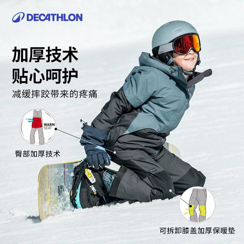 迪卡侬儿童滑雪裤背带连体雪裤男女童学生防水秋冬高腰现货KIDO