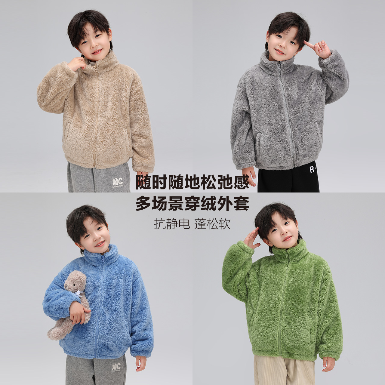 左西童装男童加厚外套2025新款儿童毛绒秋冬装摇粒绒上衣保暖冬季