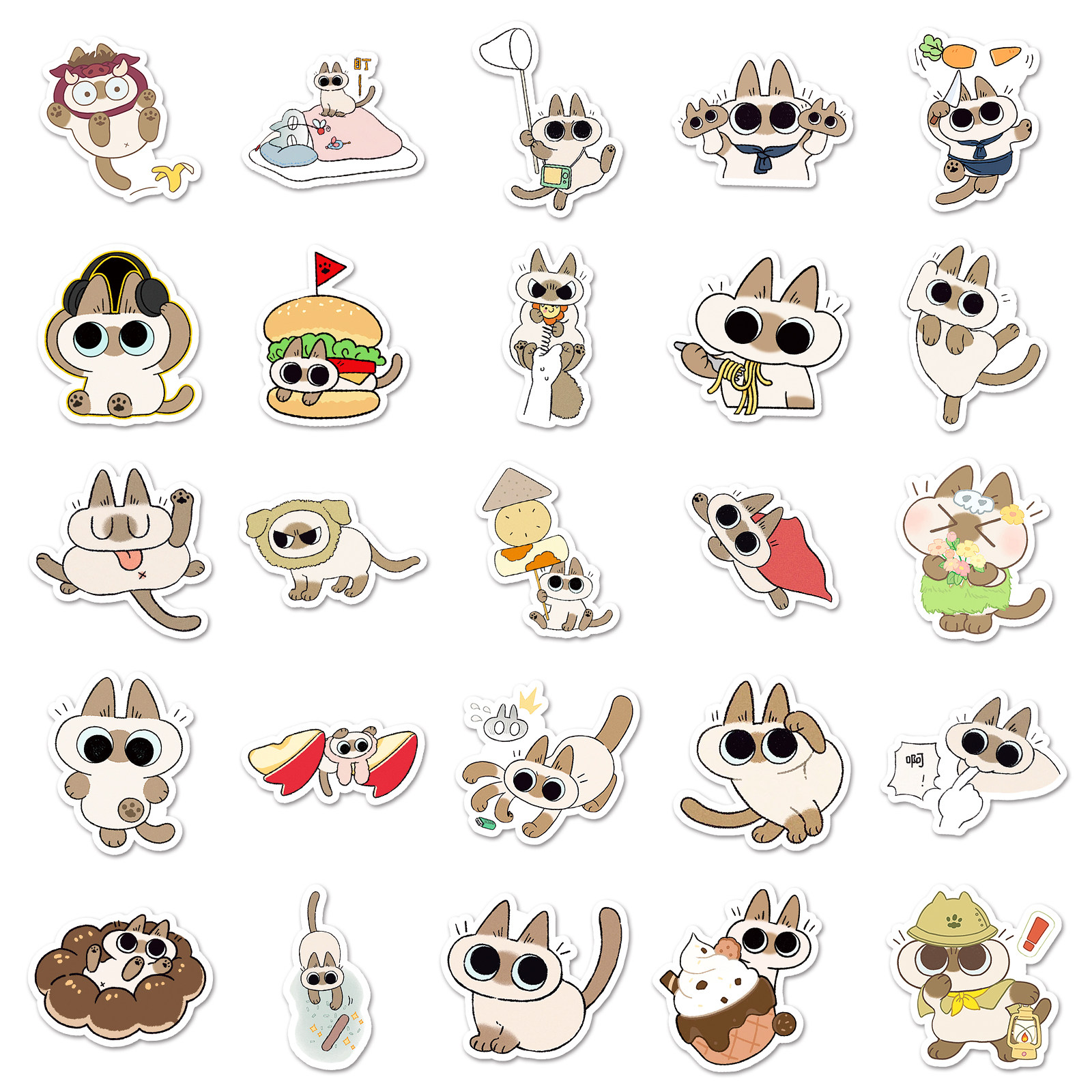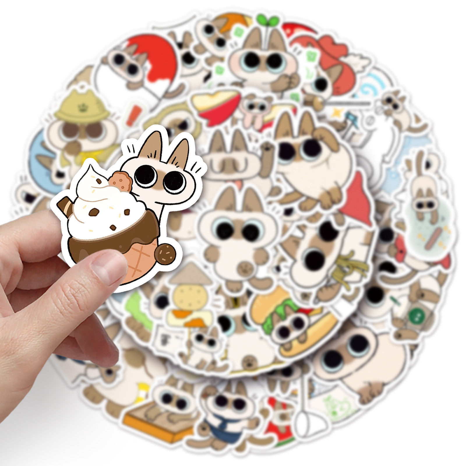 50张暹罗猫小豆泥贴纸Q版可爱小猫防水涂鸦手账DIY水杯小麻薯贴纸