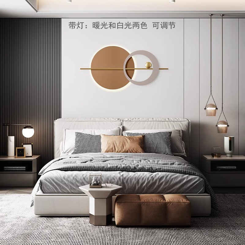 轻奢铁艺壁饰酒店样板房卧室床头沙发背景墙壁装饰品挂件带灯led