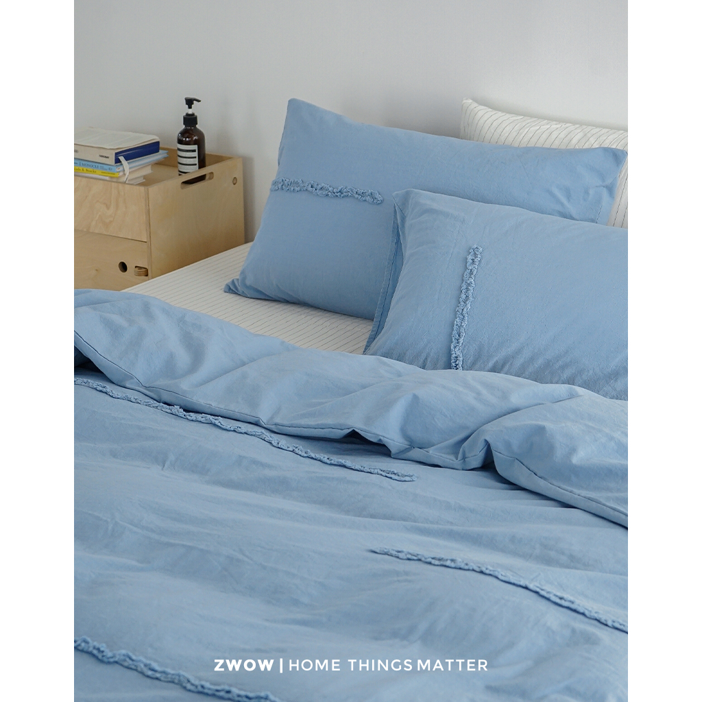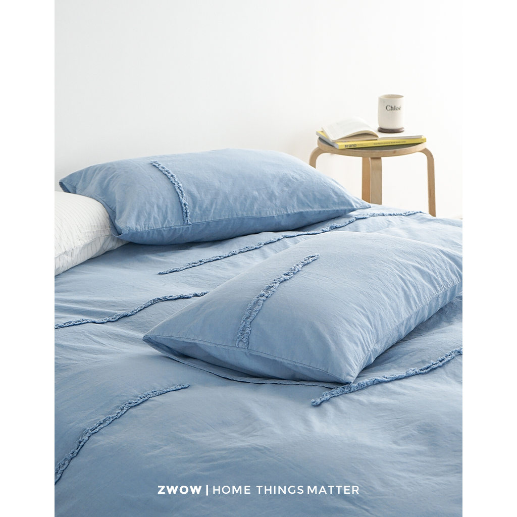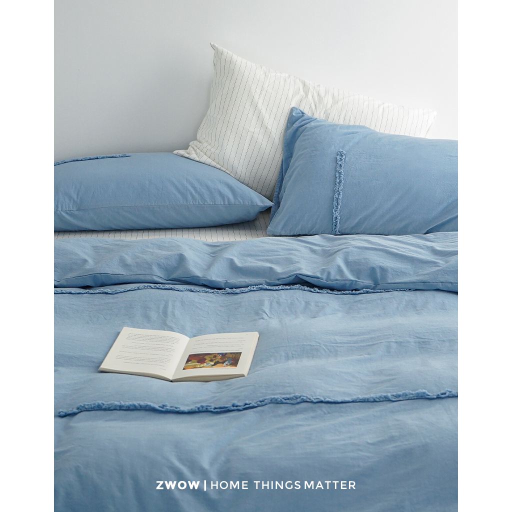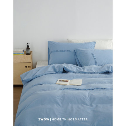 造卧zwow侘寂风2025新款复古立体条褶皱水洗蓝新中式全棉四件套