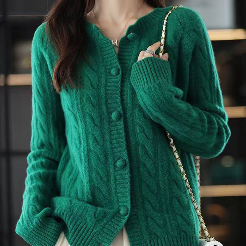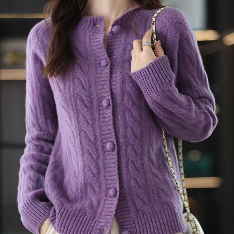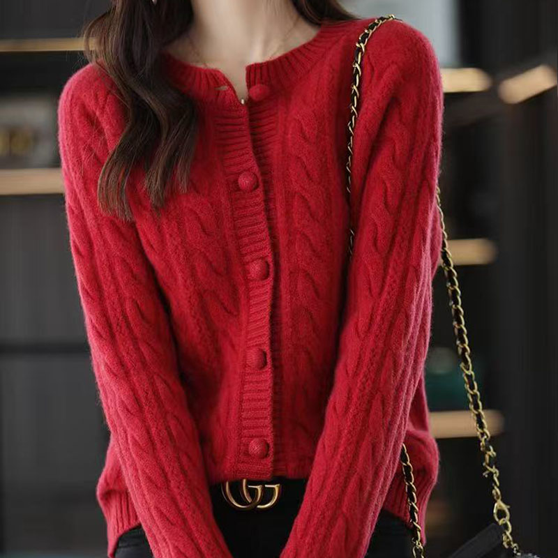 针织开衫女秋冬2025年新款女士毛衣外搭宽松短款上衣加厚麻花外套