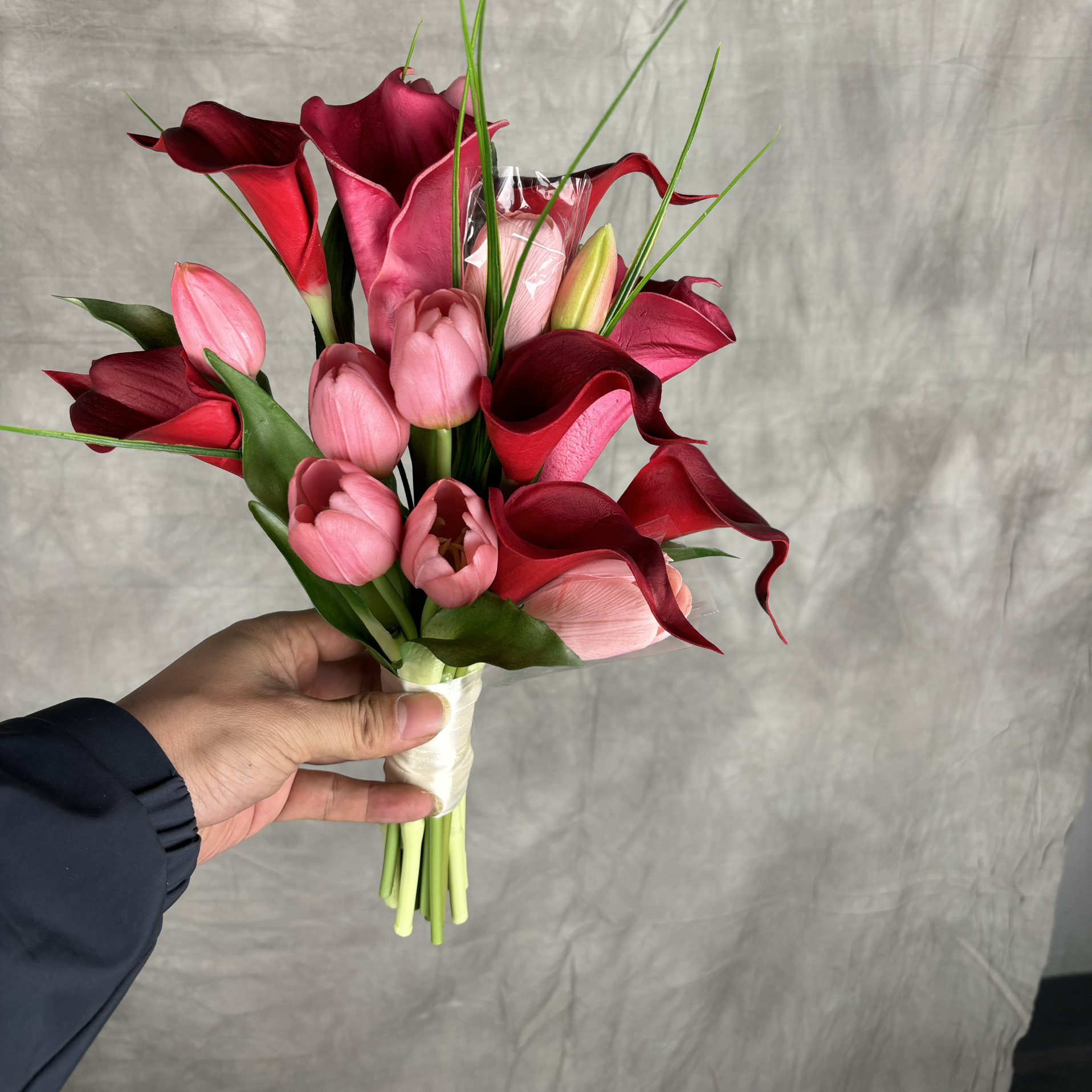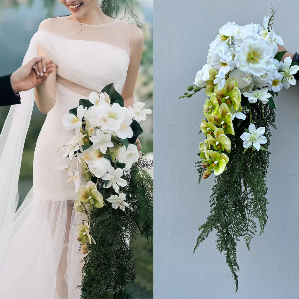 婚纱摄影拍照道具手捧花婚纱照复古白纱拍摄粉色玫瑰瀑布仿真花束