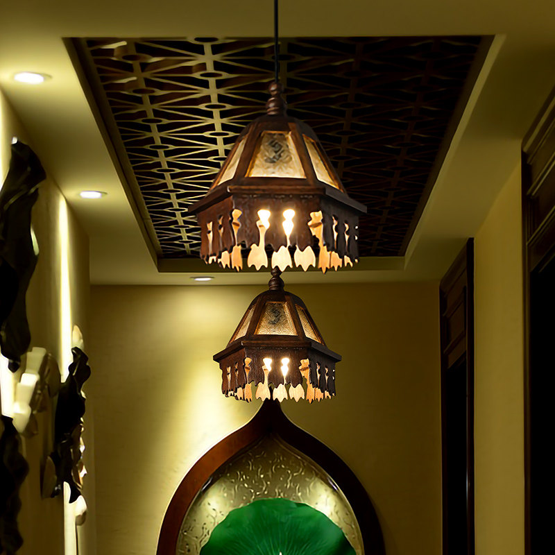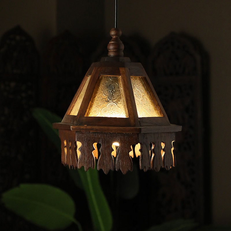 东南亚风格灯具泰式餐厅茶室吧台阳台复古氛围实木吊灯玻璃床头灯