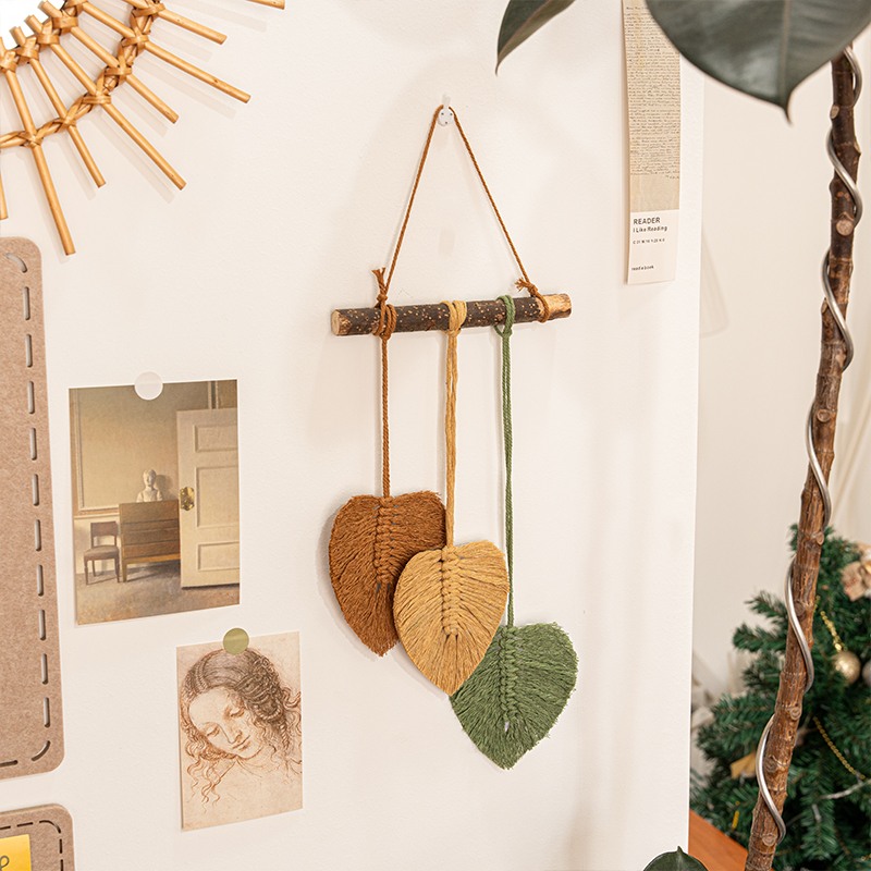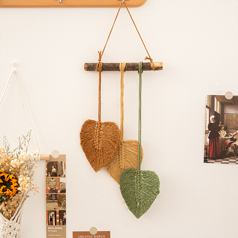 ins风树叶挂件美式复古风壁饰手工编织墙面装饰布置壁挂拍照道具