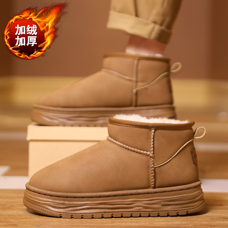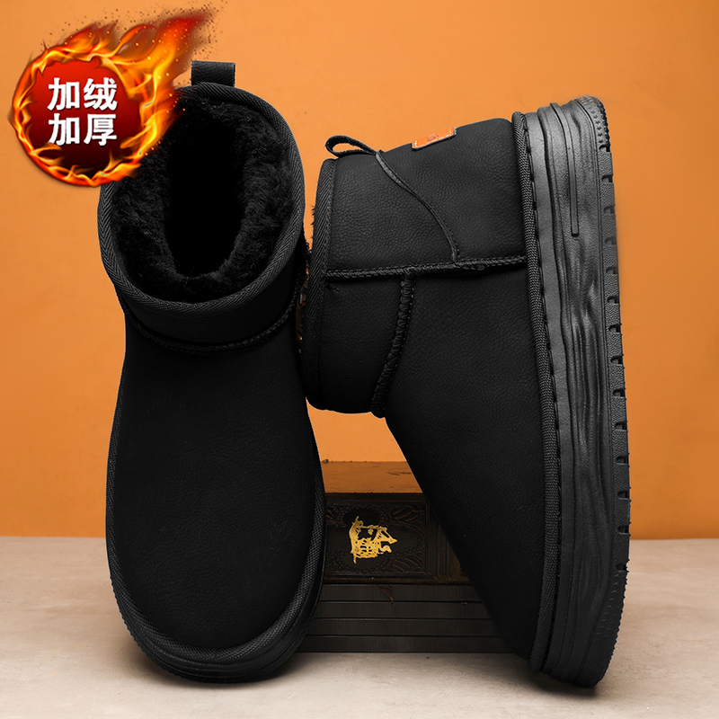 雪地靴男款冬季皮毛一体面包鞋防水防滑加绒加厚保暖防寒东北棉鞋