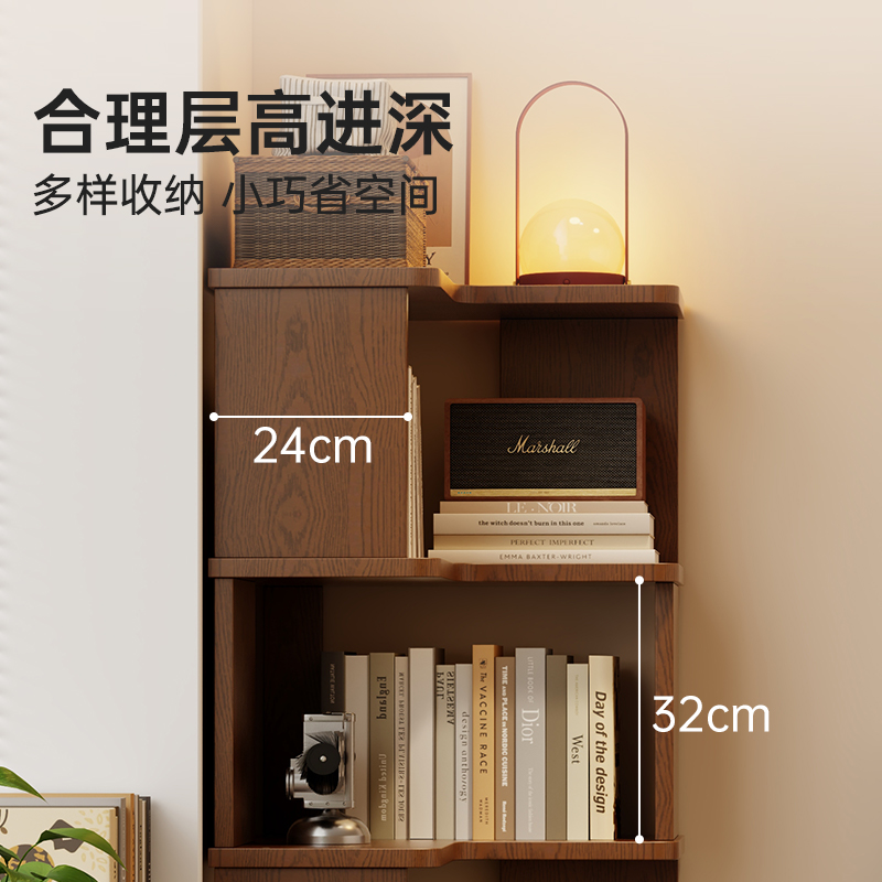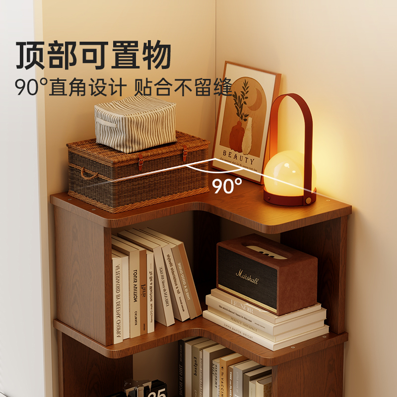 书架落地置物架实木转角柜一体靠墙储物简易立式多层不占空间书柜