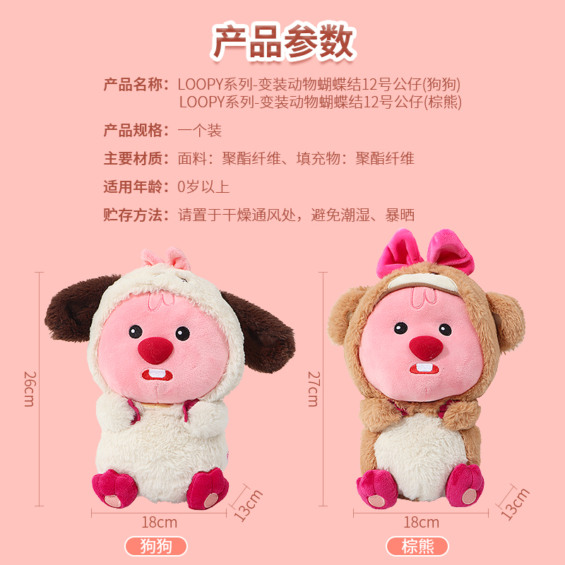 miniso名创优品LOOPY变装动物蝴蝶结公仔棕熊露比小海狸可爱玩偶