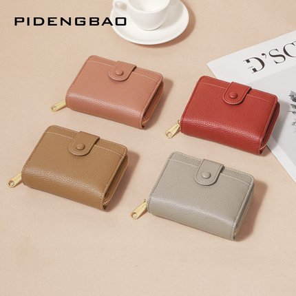 2025新款拉链零钱包短款女钱包时尚荔枝纹皮夹拉链女款两折小卡包