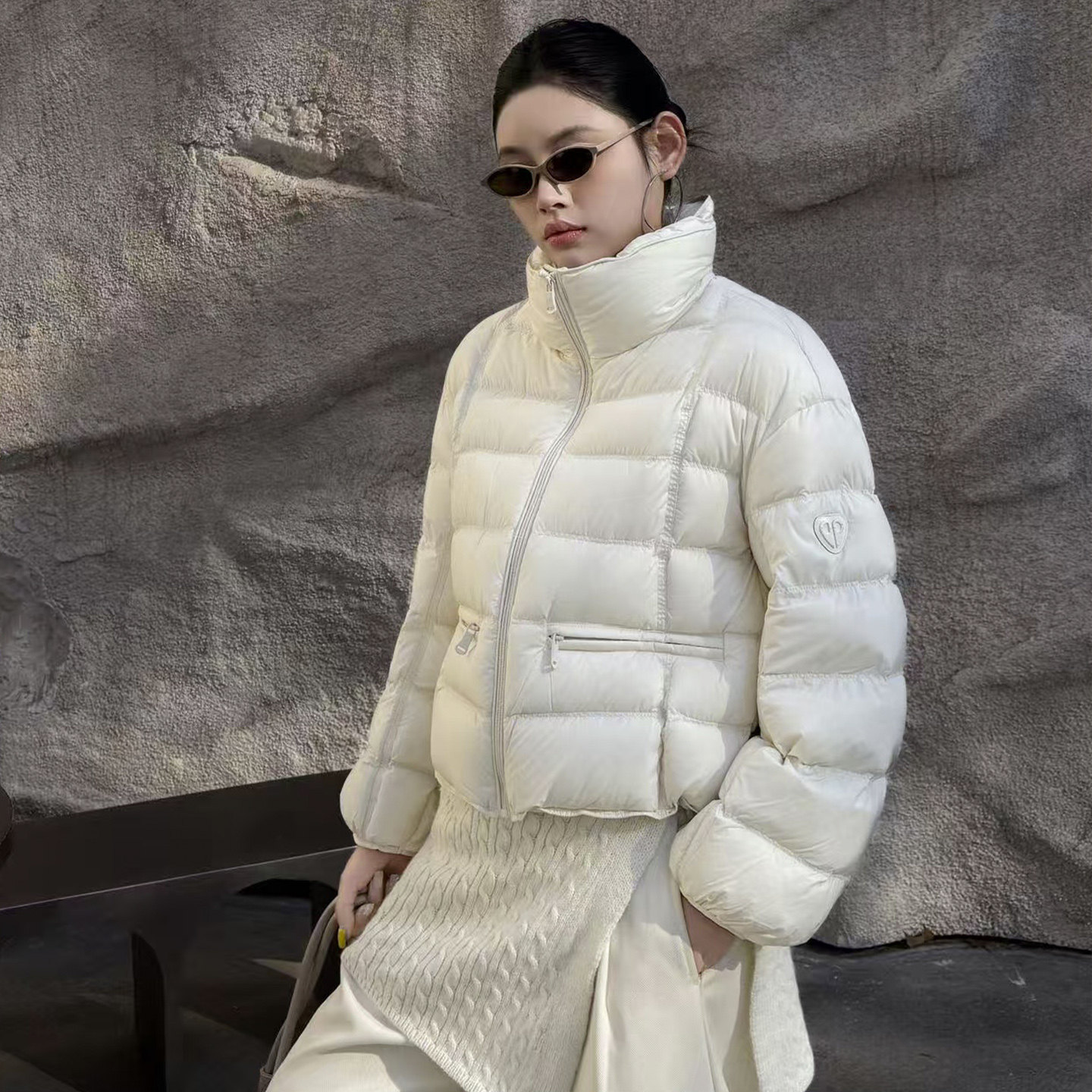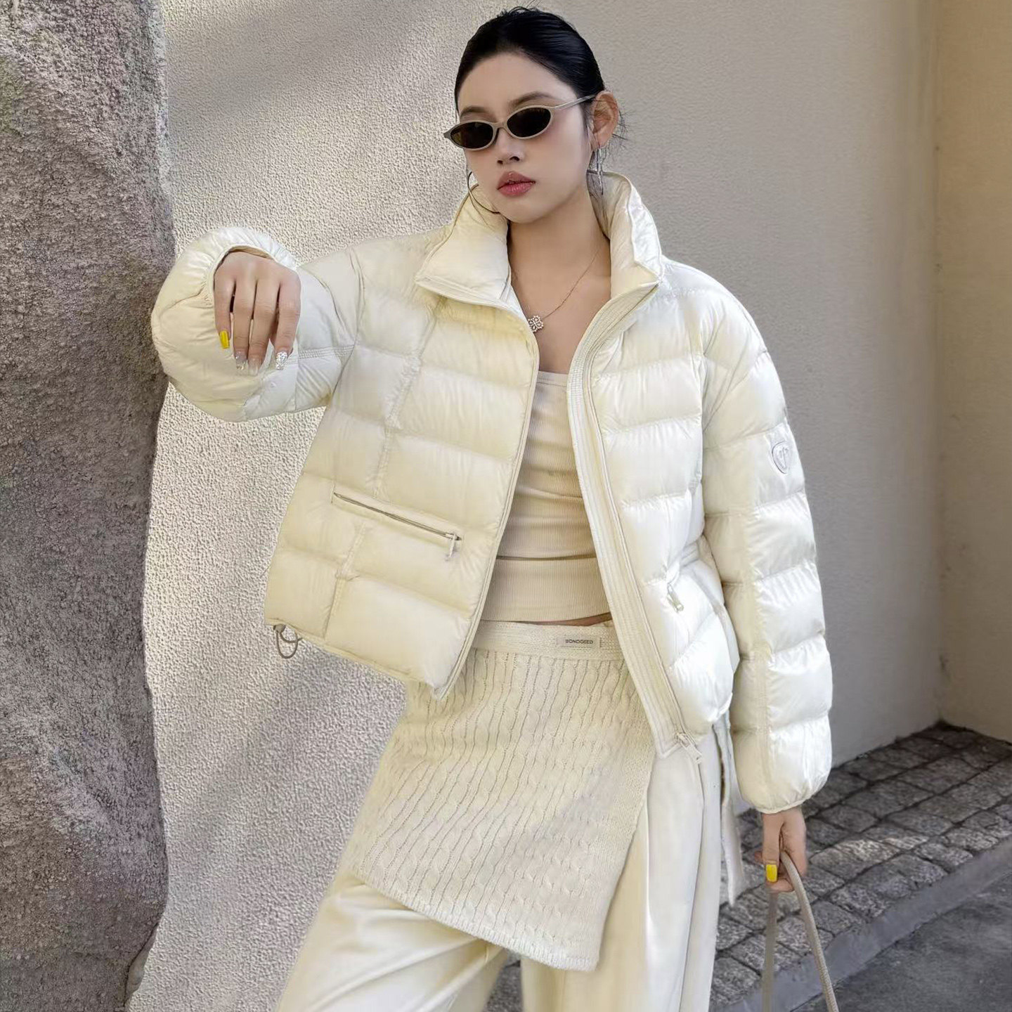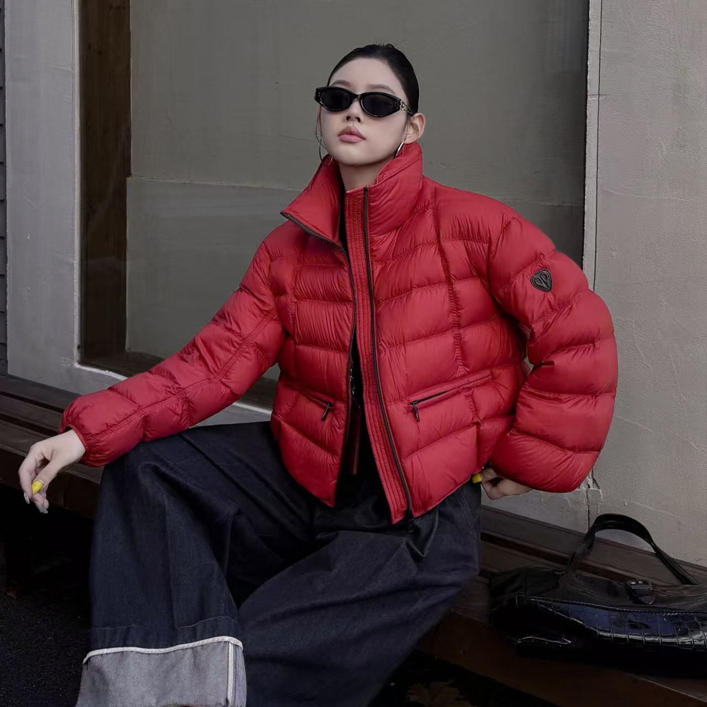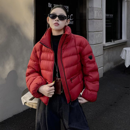 90白鸭绒红色短款立领羽绒服外套