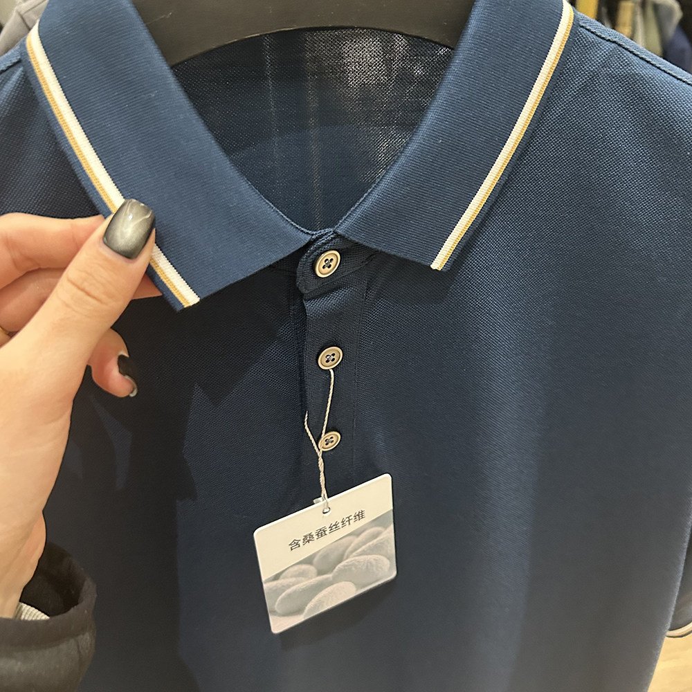 H家桑蚕丝商务休闲翻领短袖POLO
