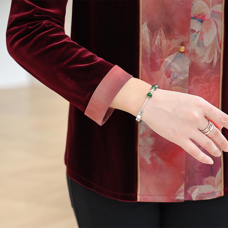 金丝绒外套上衣中老年人女装春秋季新中式洋气盘扣洋气开衫妈妈装