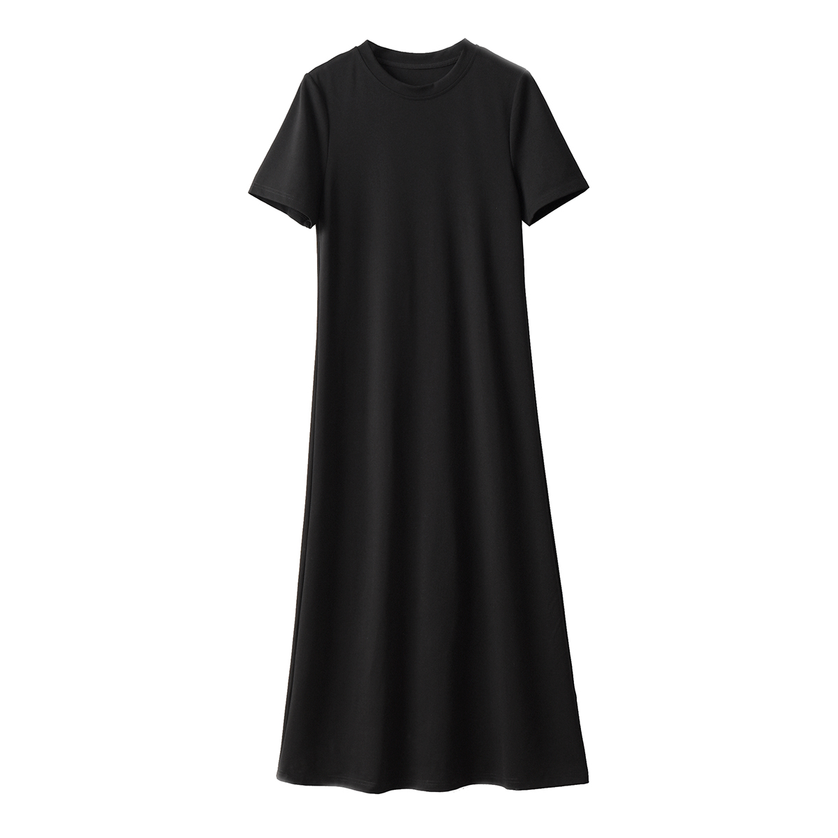 克重高 垂顺有型 女士A字型连衣裙 短袖宽松长裙 显瘦小黑裙 女装