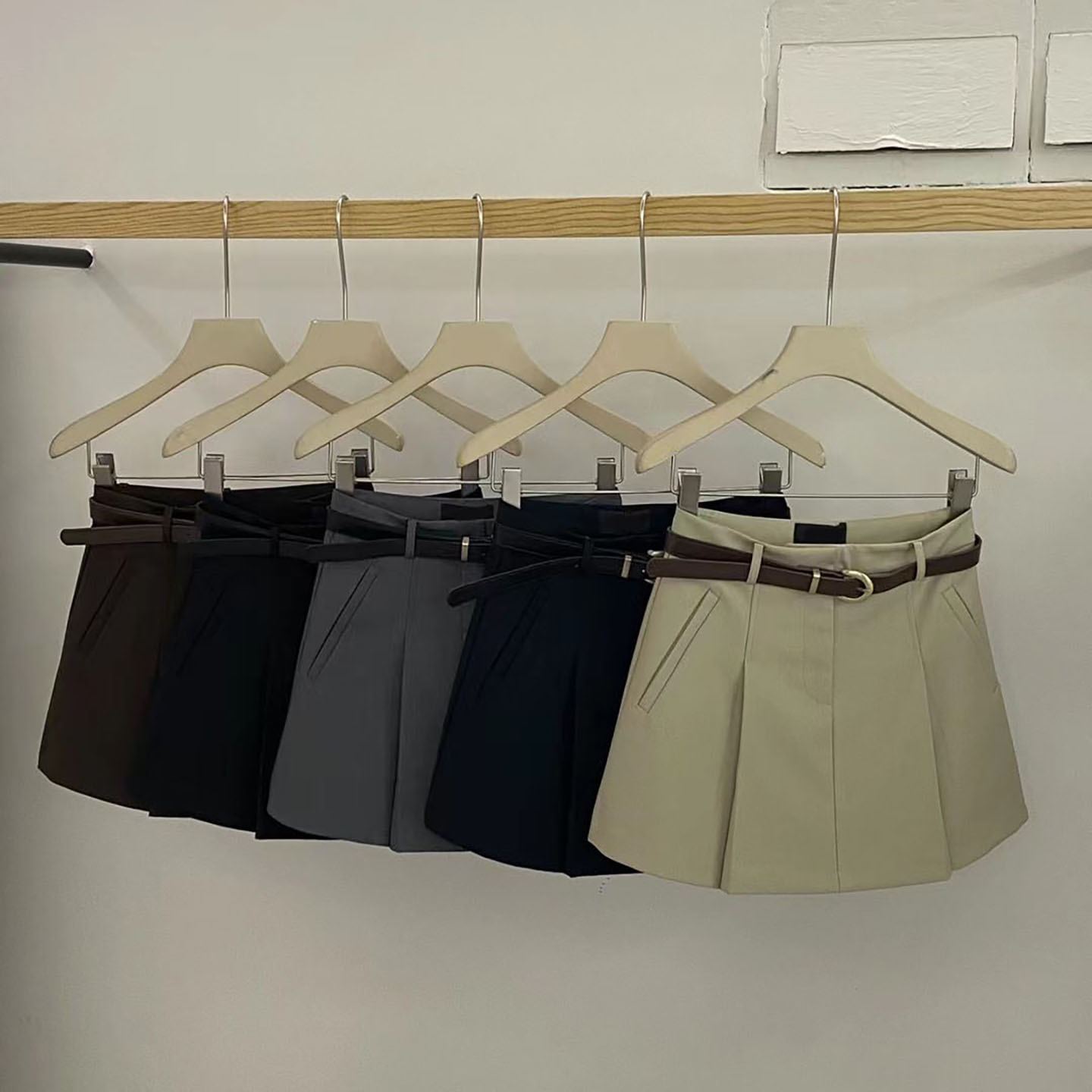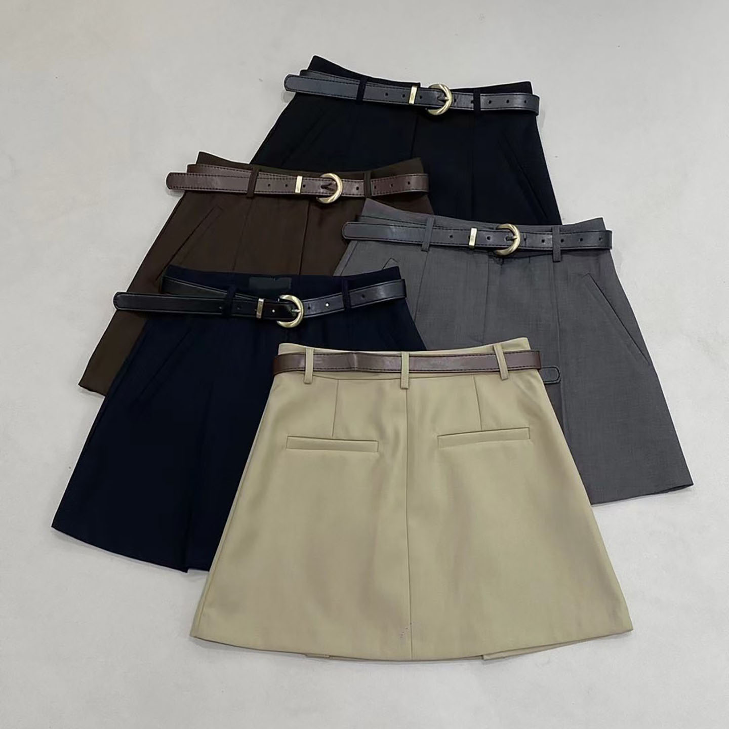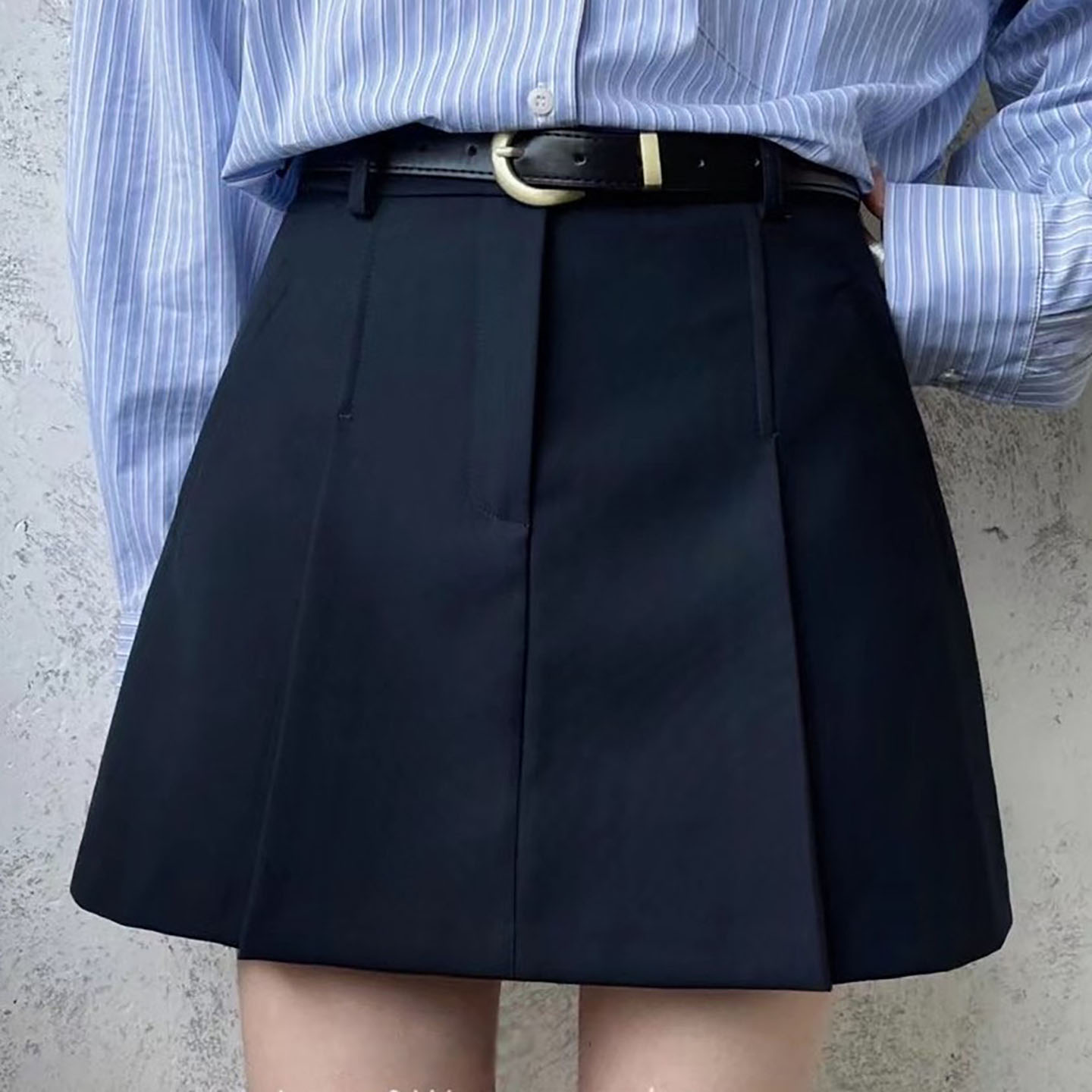 2025年春秋通勤复古风A字半身裙高腰小个子百褶短裙女配腰带