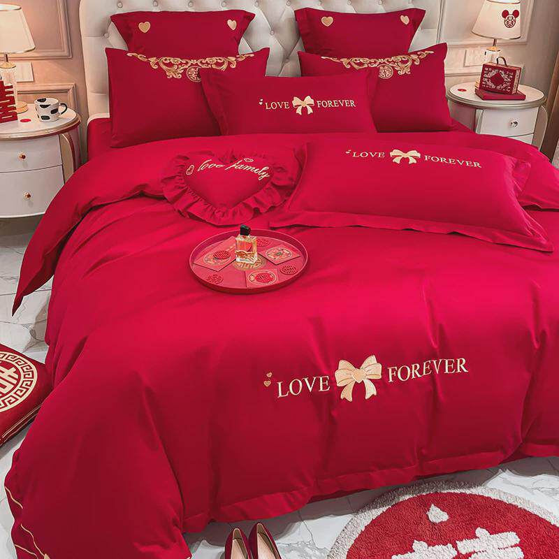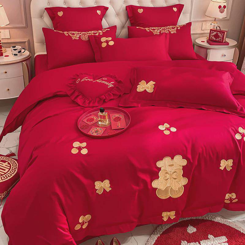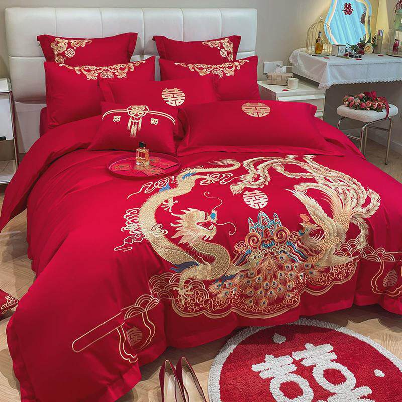 高档中式龙凤大红色时尚婚庆四件套结婚刺绣床单被套陪嫁床上用品