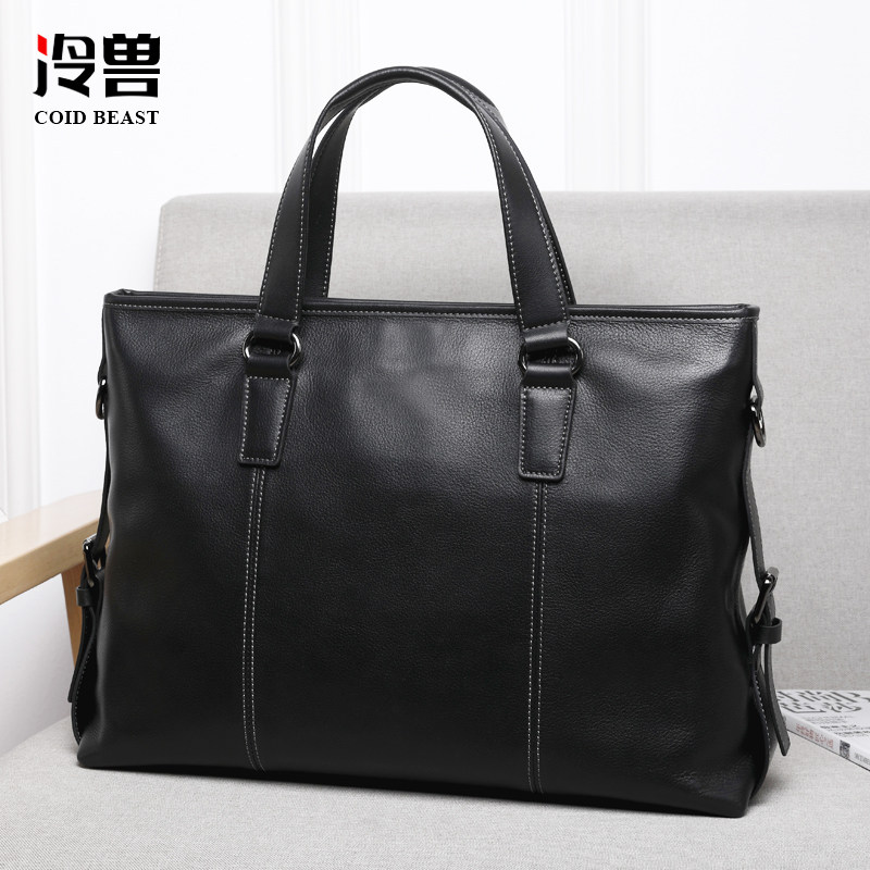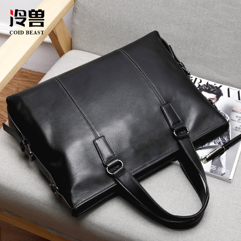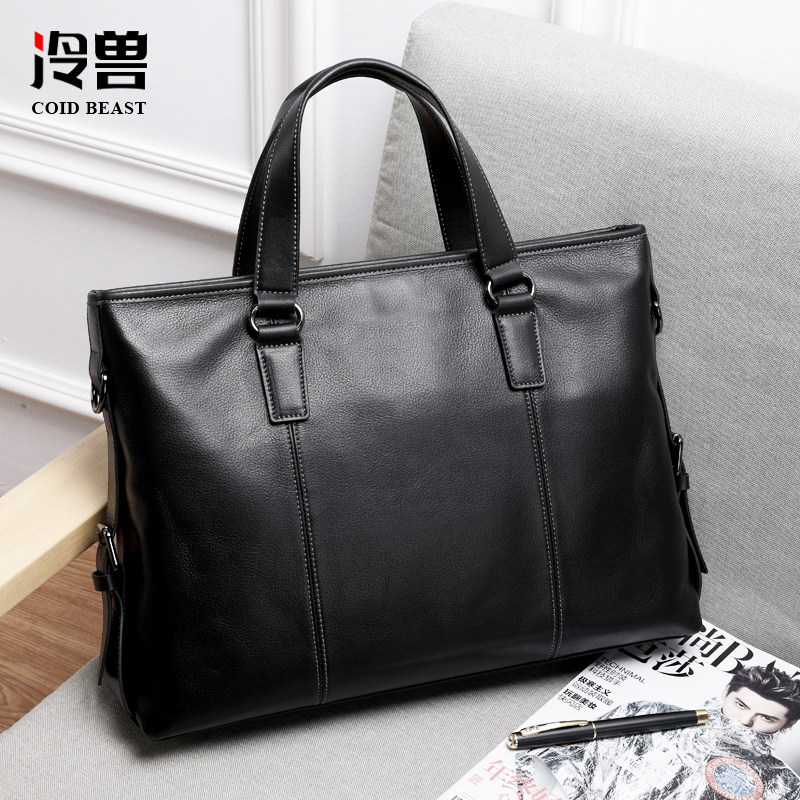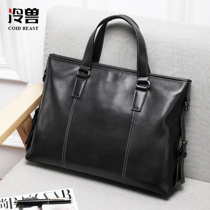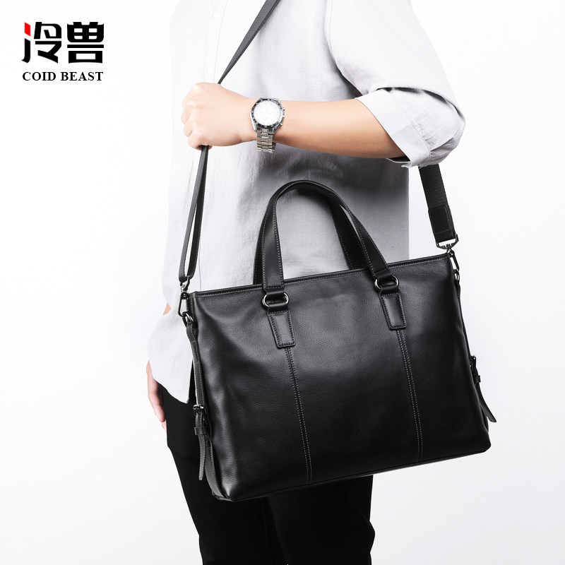 冷兽手提包男真皮单肩斜挎男士包包商务男款牛皮公文包电脑背包
