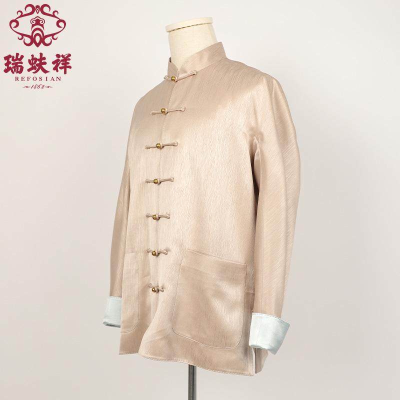 瑞蚨祥唐装男中老年盘扣外套春秋休闲中式立领高档复古醋纤茶禅服