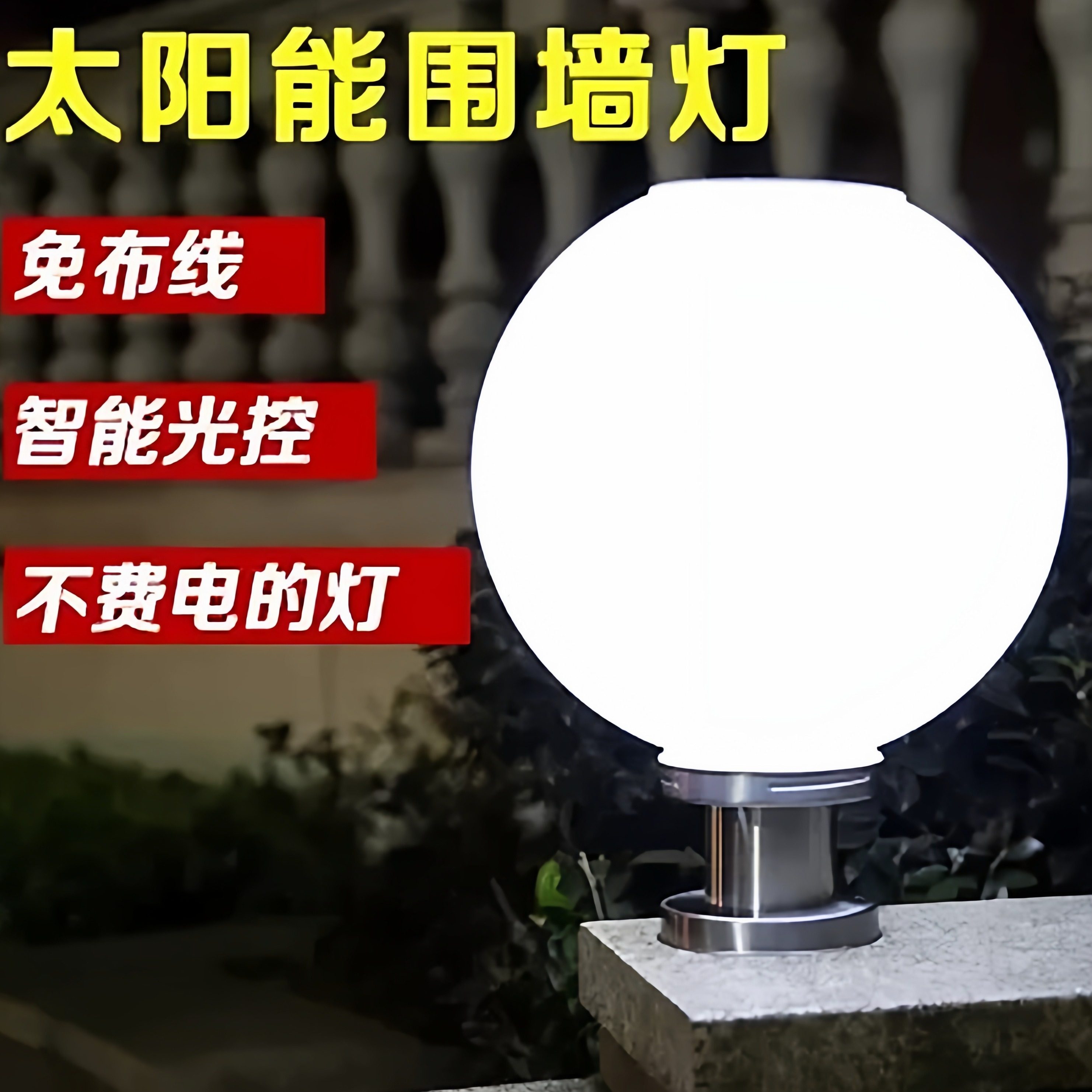 太阳能led柱头灯户外防水庭院圆形两侧柱子灯围墙灯大门灯球形灯