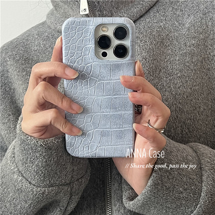 苹果16promax皮质小众浅蓝鳄鱼纹