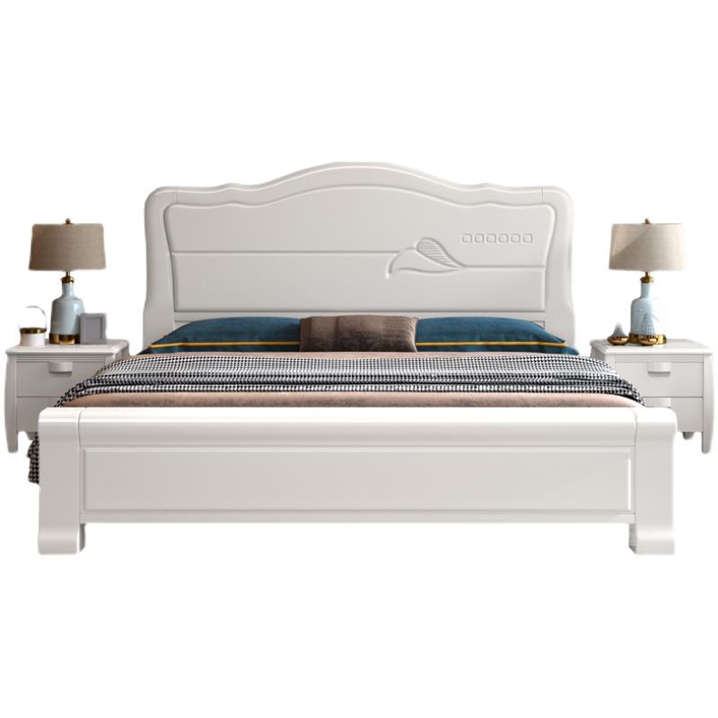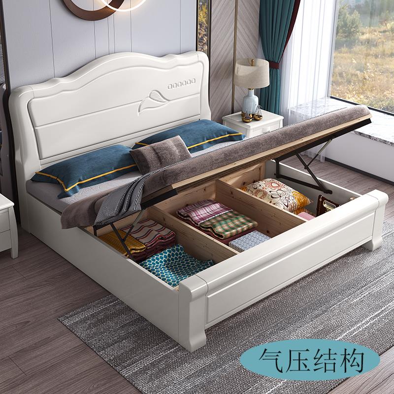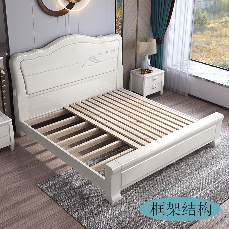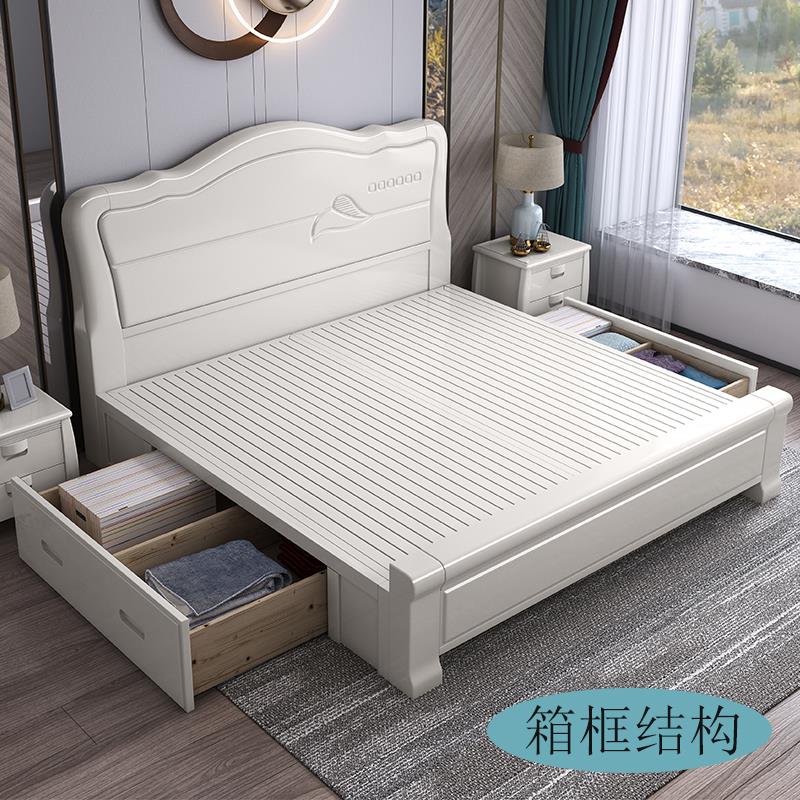 白色实木床1.8米双人床现代简约经济高箱储物主卧公主床1.5米婚床