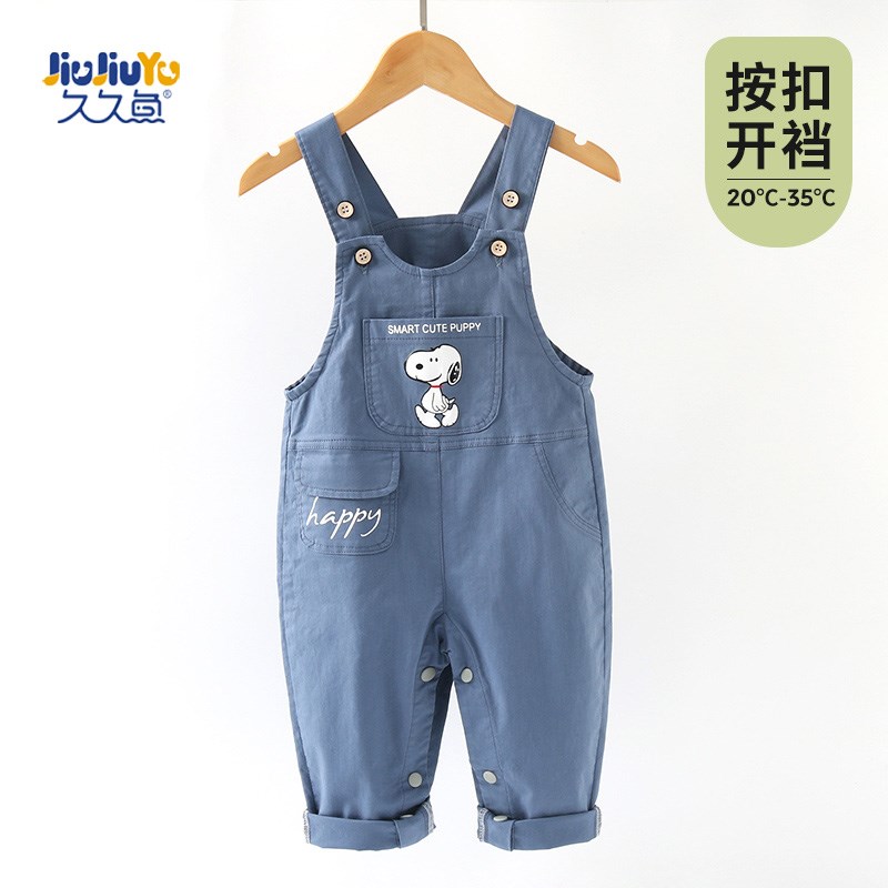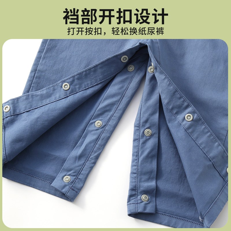 婴儿背带裤夏季薄款纯棉按扣开裆男童新款一岁儿童男宝宝春夏裤子