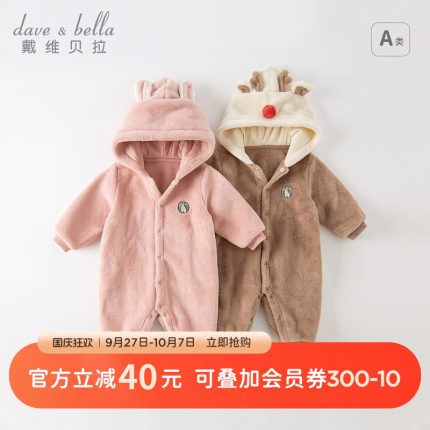 【商场同款】戴维贝拉女宝宝连体衣冬季装婴儿新生儿男宝宝爬服