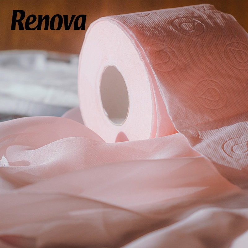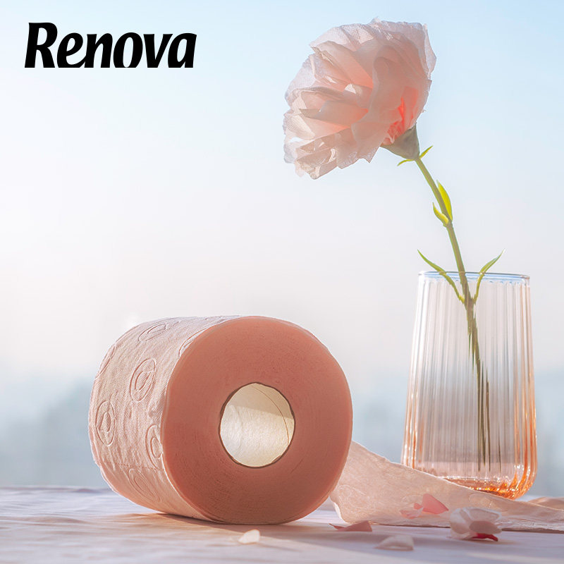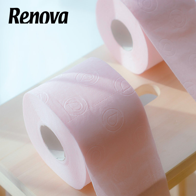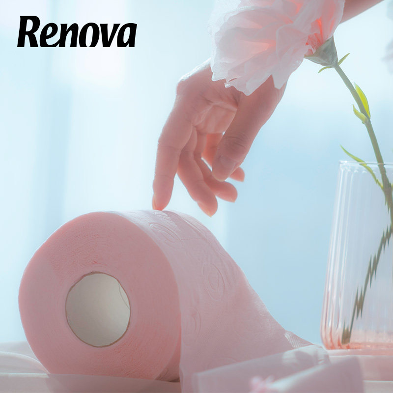 Renova粉色乳液卷筒纸4层4卷柔软