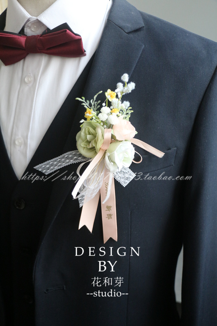 原创手工 清新浅绿玫瑰森系叶子活动胸花新娘伴娘姐妹团手腕花
