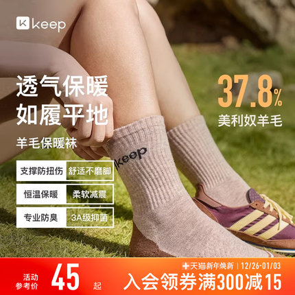 Keep羊毛登山袜缓震专业跑步徒步运动防臭抗菌中筒袜美利奴羊毛袜