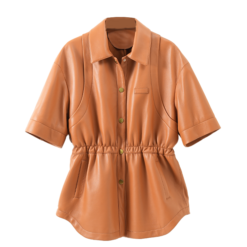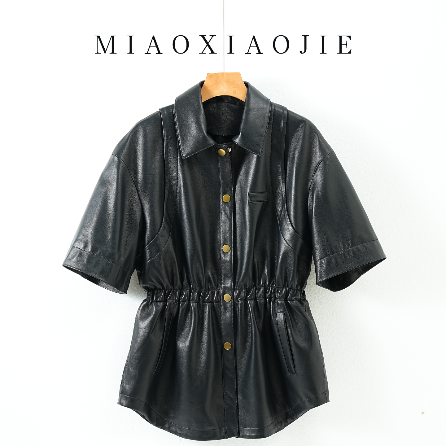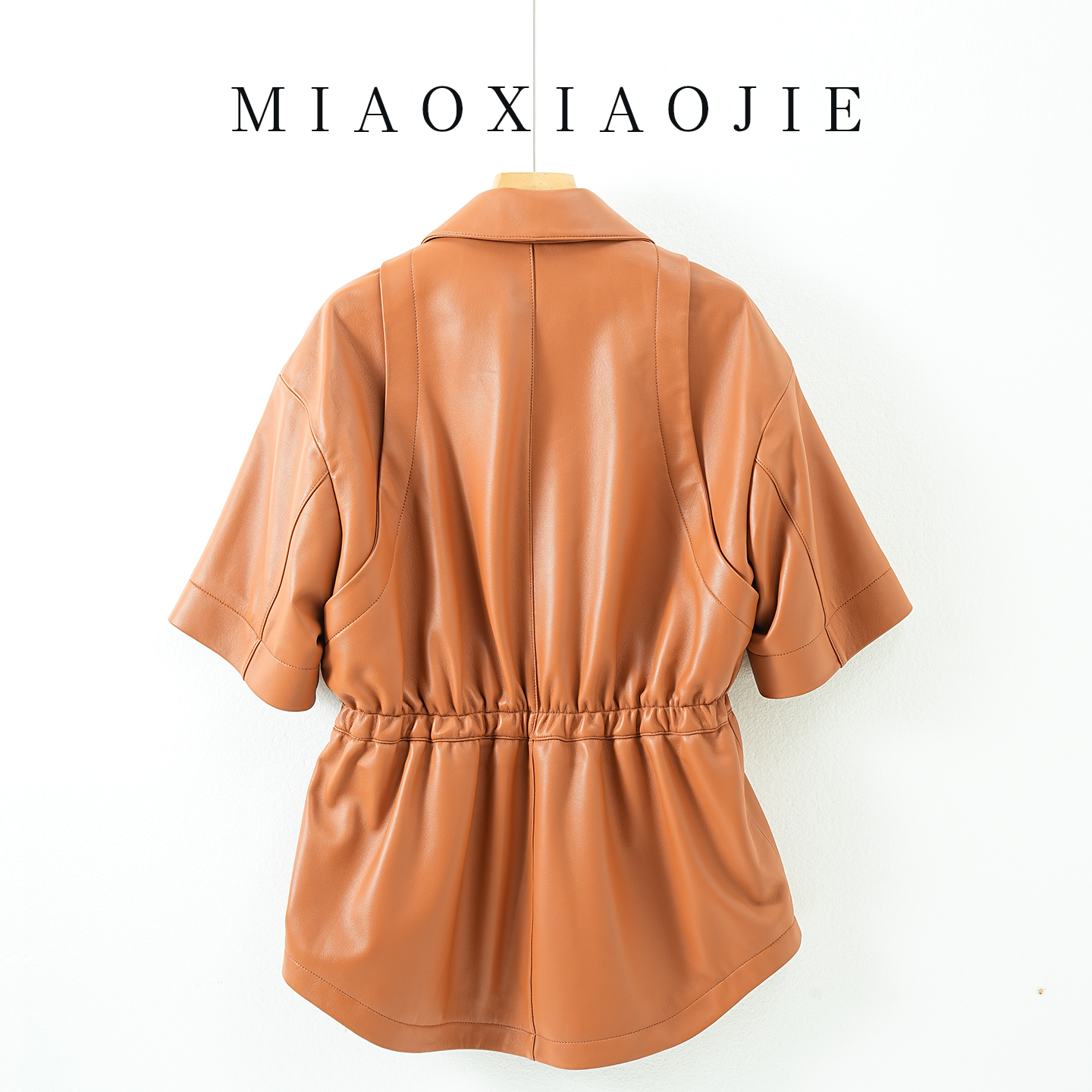 欧洲站小羊皮真皮皮衣法式复古皮短袖皮连衣裙皮裙女收腰显瘦