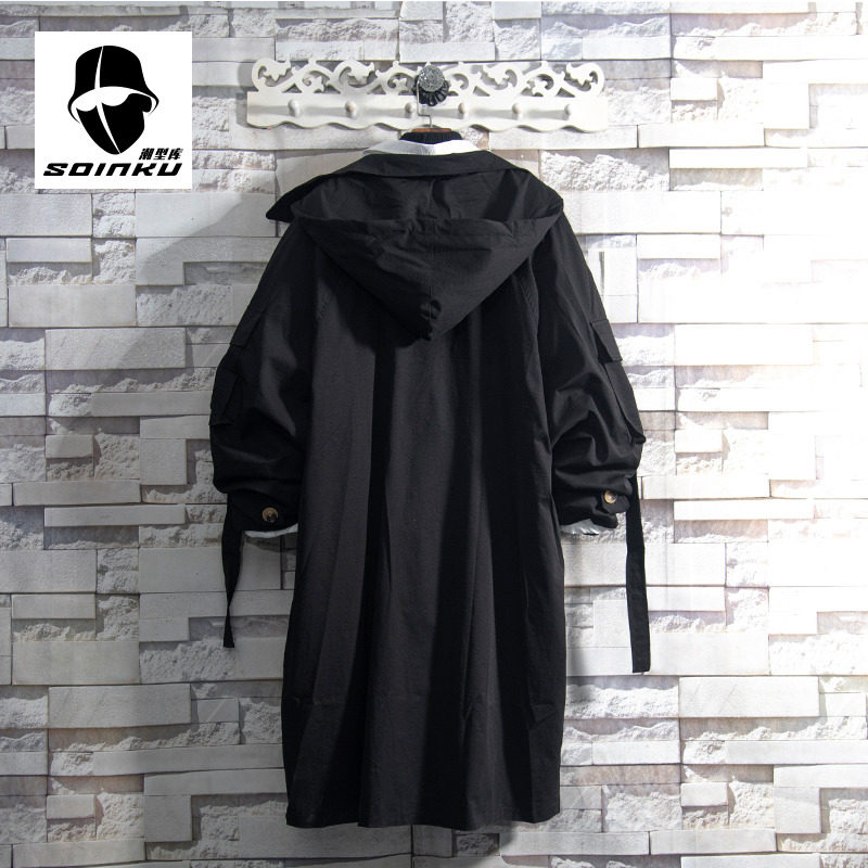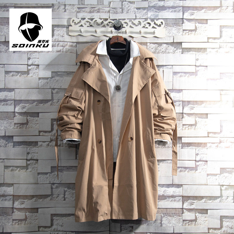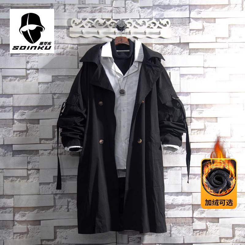 soinku2025新款中长款风衣外套男秋初冬青少年加绒棉衣机能风大衣