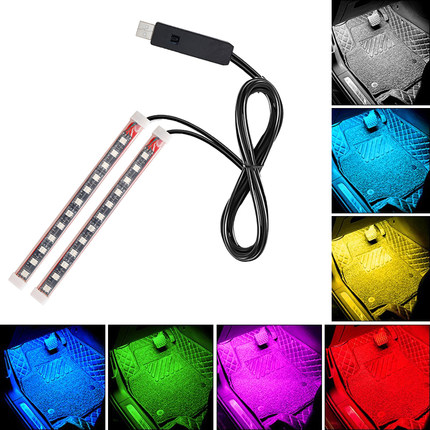 车内声控氛围灯遥控LED车载内饰脚底七彩气氛音乐节奏汽车装饰灯