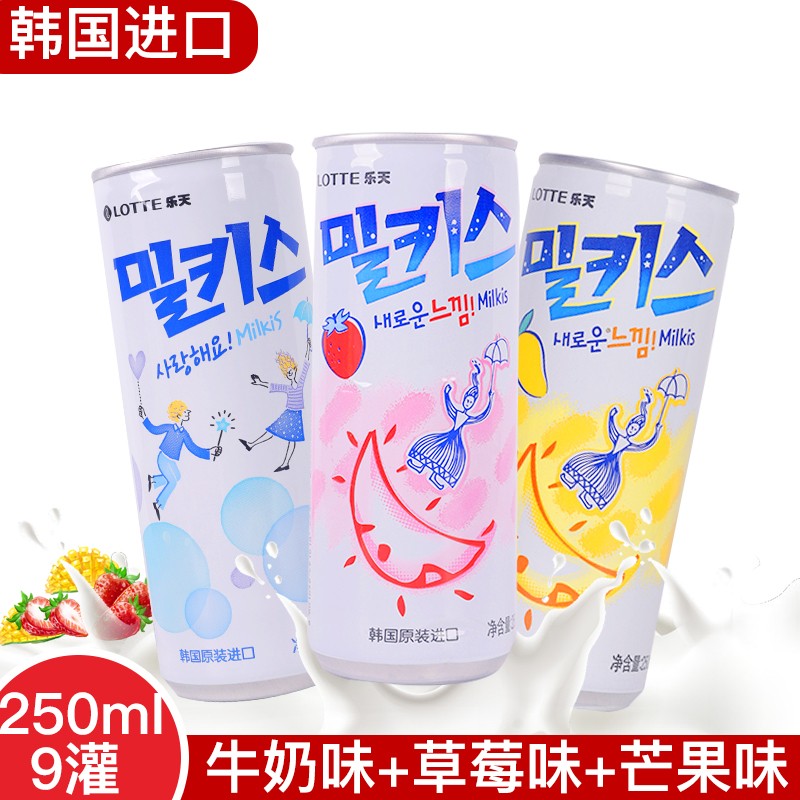 韩国进口乐天妙之吻LOTTE芒果味苏打碳酸饮料250ml×30罐汽水饮品