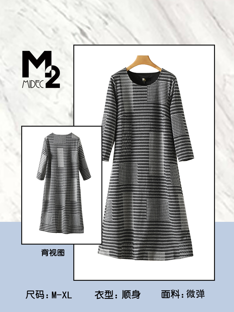 M2折扣店春秋款高级感气质洋气显瘦长袖大码中年妈妈连衣裙
